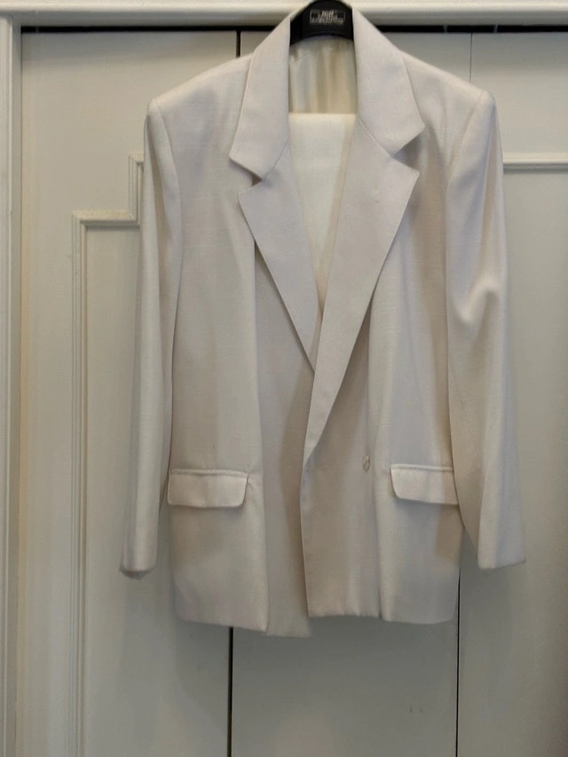 Ladies white suit, skirt and jacket. Used but like new. Size Medium (fits 8-10). Cash only, please. For sale by owner. Curbside pickup available.