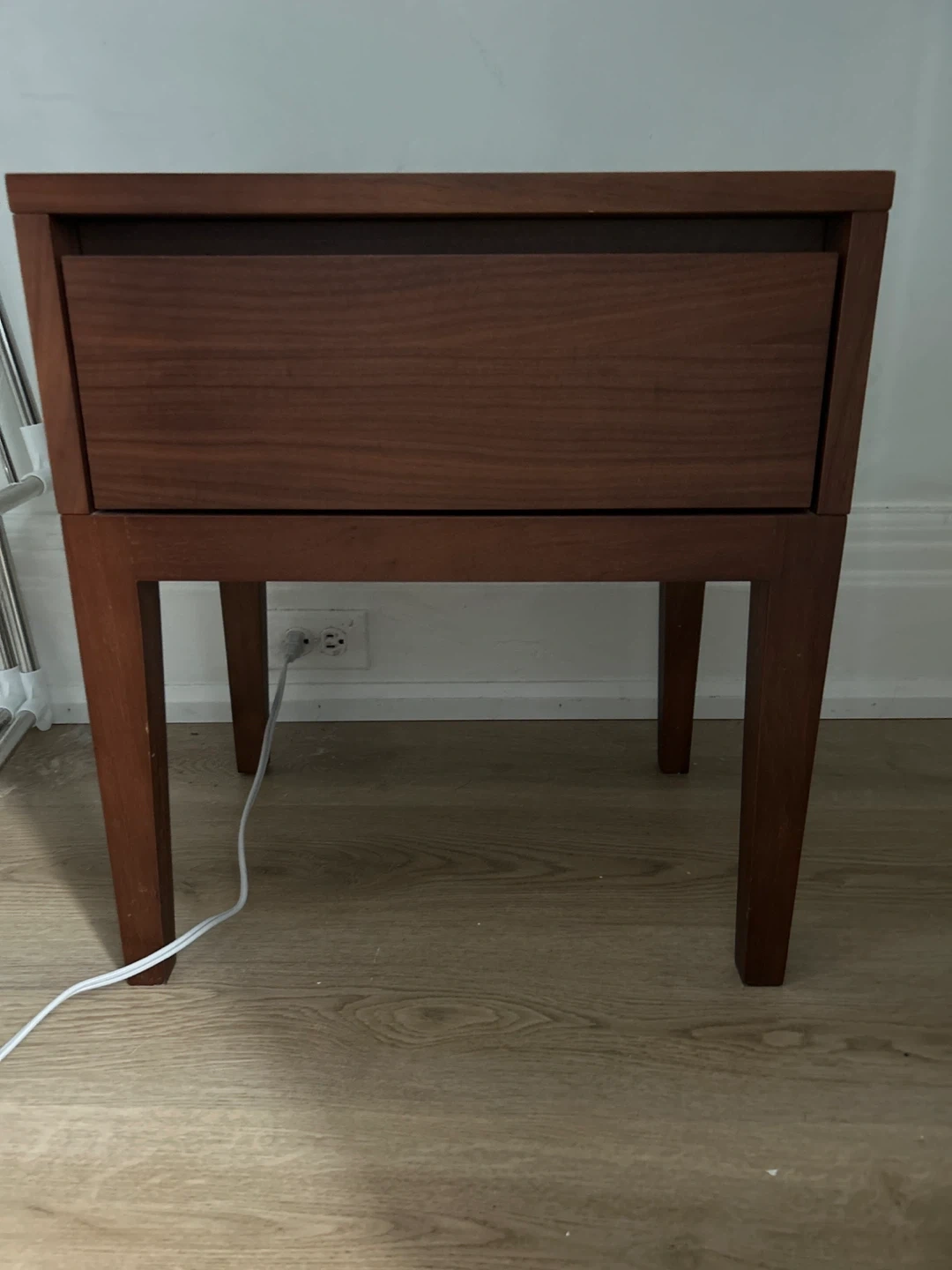 Has a small drawer. Could be used as a night stand or side table. In great shape with no issues or damage.