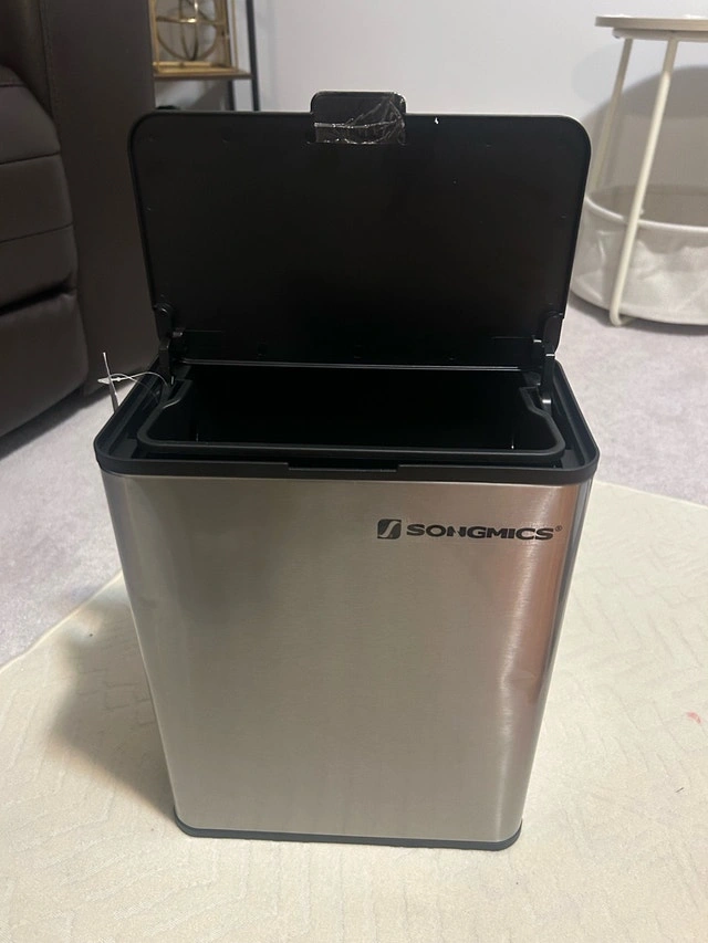This Songmics step trash can is a practical and stylish addition to any home or office space. It features a durable stainless steel exterior, a soft-close lid, and a removable inner bucket for easy cleaning. This item is new. Here are some additional details: