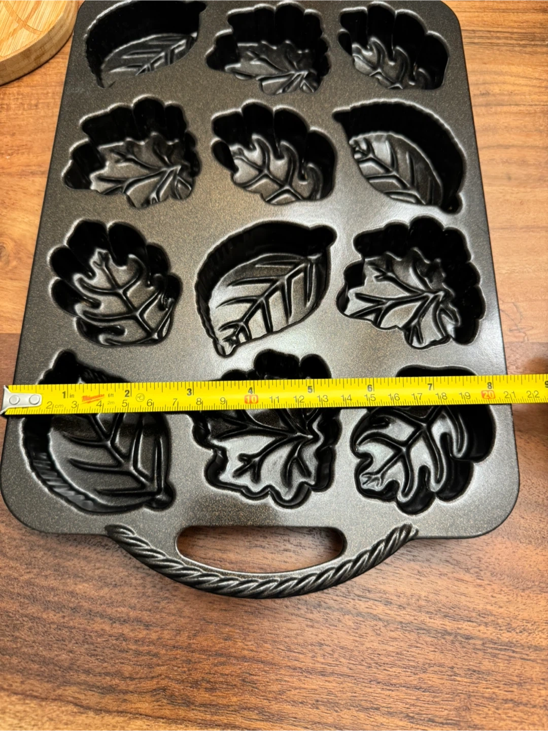 Here's a Nordic Ware Leaf Loaflettes pan for your baking needs! It's perfect for making leaf-shaped muffins or mini cakes. The pan measures approximately 9 inches by 13 inches. Made in the USA since 1946