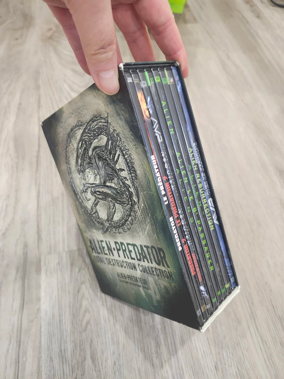 This is the Alien vs Predator Total Destruction Collection on DVD. It includes the "Alien" "Alien 2" "Alien 3" "Alien Resurrection" "Alien vs Predator" and "Predator 2" films. This collection is great for any fan of the franchise!