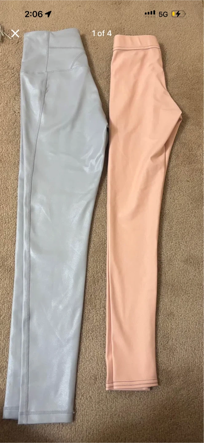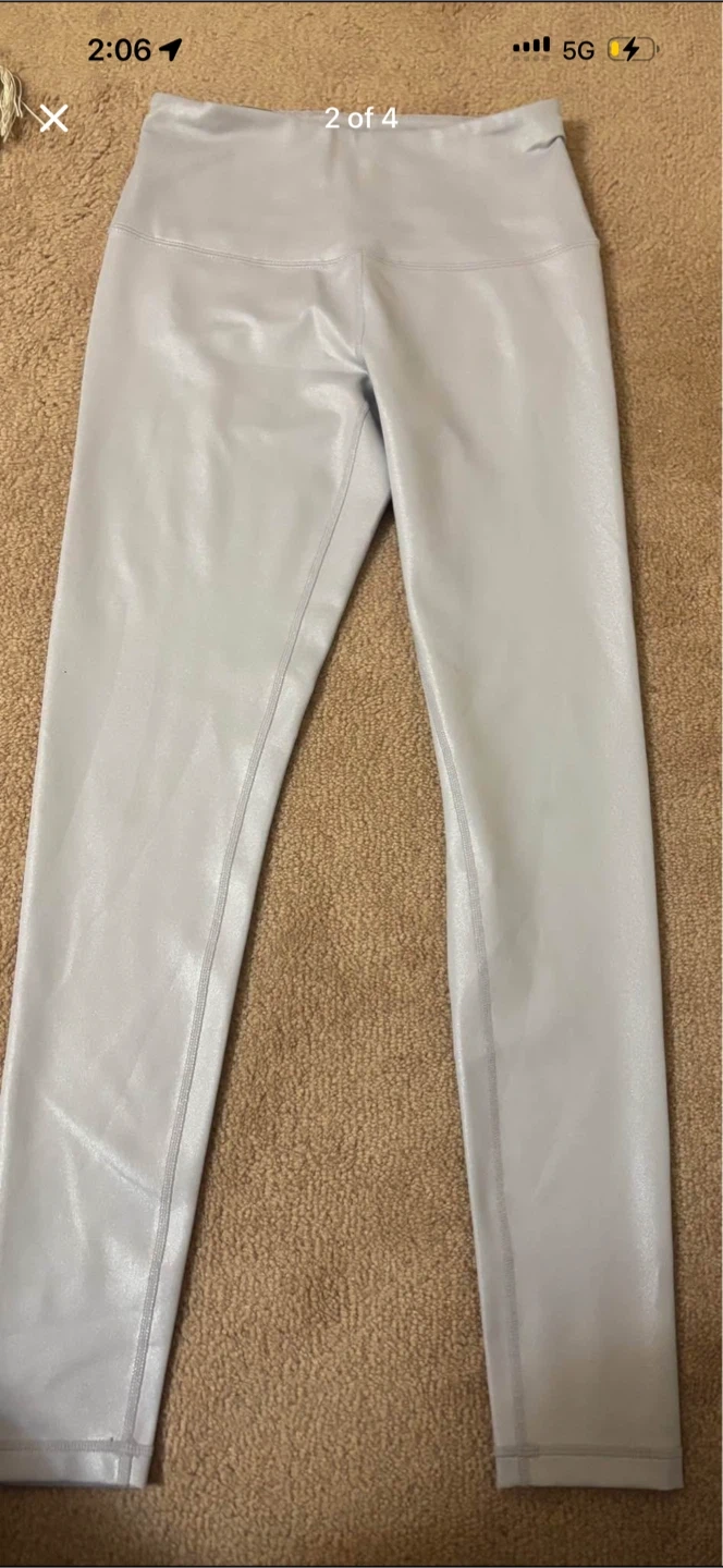 Zella high-waisted leggings in a light pink and silver colour. Size small. Made from a comfortable, stretchy fabric that's perfect for workouts or everyday wear.