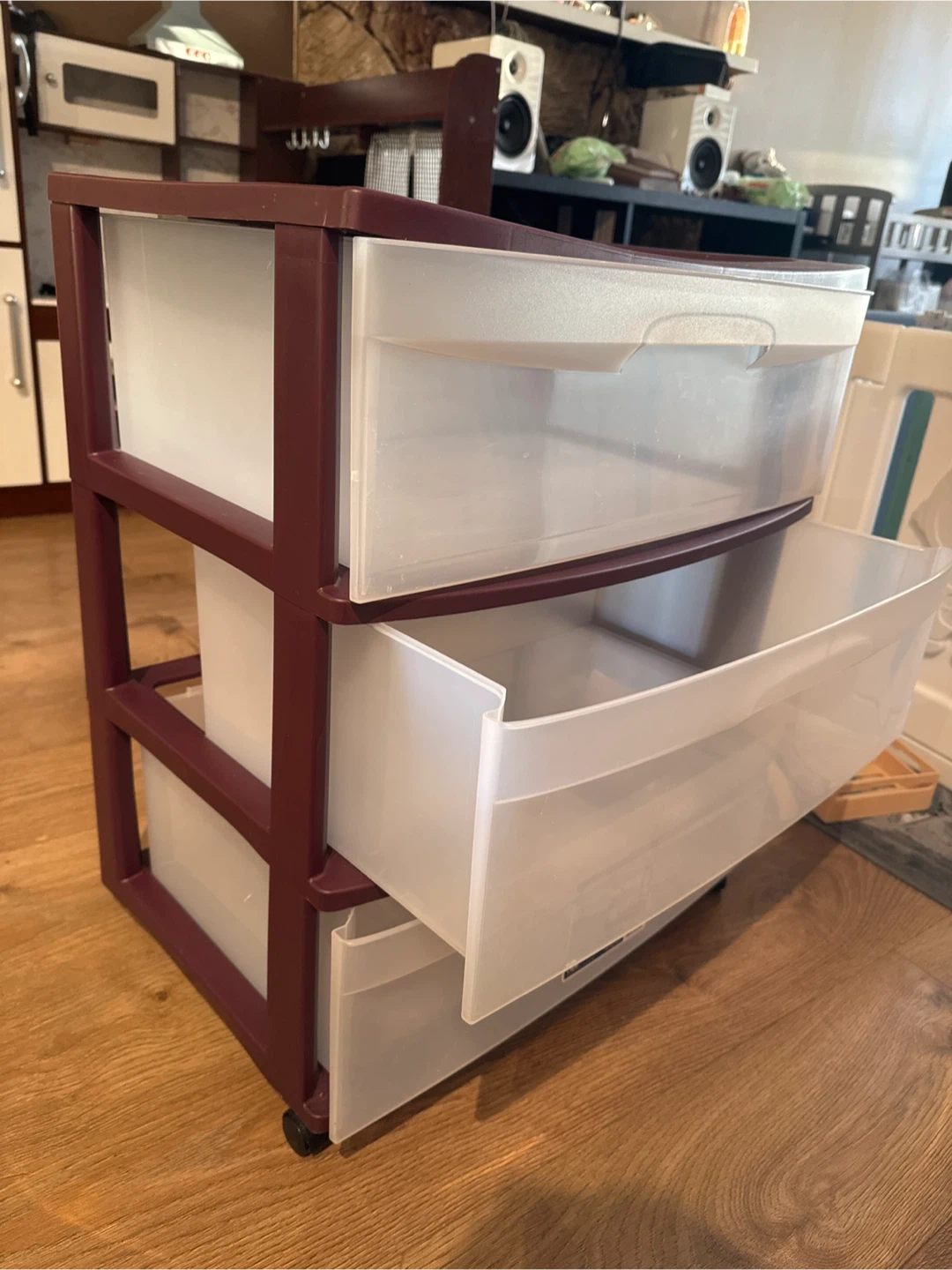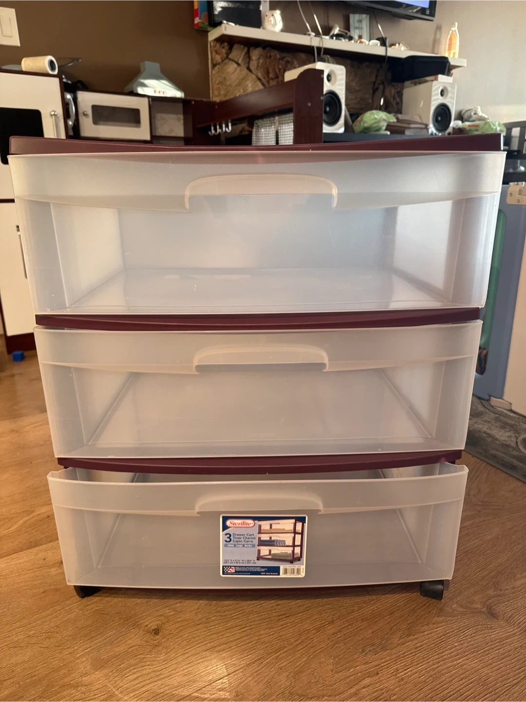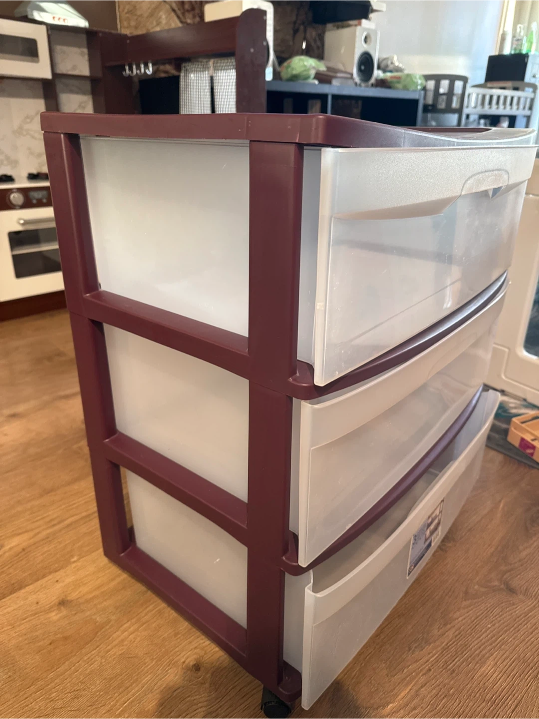 Buy & Sell3 Drawer Rolling Cart3 Drawer Rolling Cart$203-drawer chest on wheels. It's made of plastic with a burgundy frame and clear drawers. Good conditionConditionGoodWHERE TO MEETOutside of save on foodsView MapSELLERMimi CervantesLougheed9610 reviews2 chats·1 favorites·24 viewsSEND CHAT TO SELLERHi Mimi Cervantes! I’m interested in your listing.Hi Mimi Cervantes! I’m interested in your listing.Get the Karrot app to chatSign In to chat