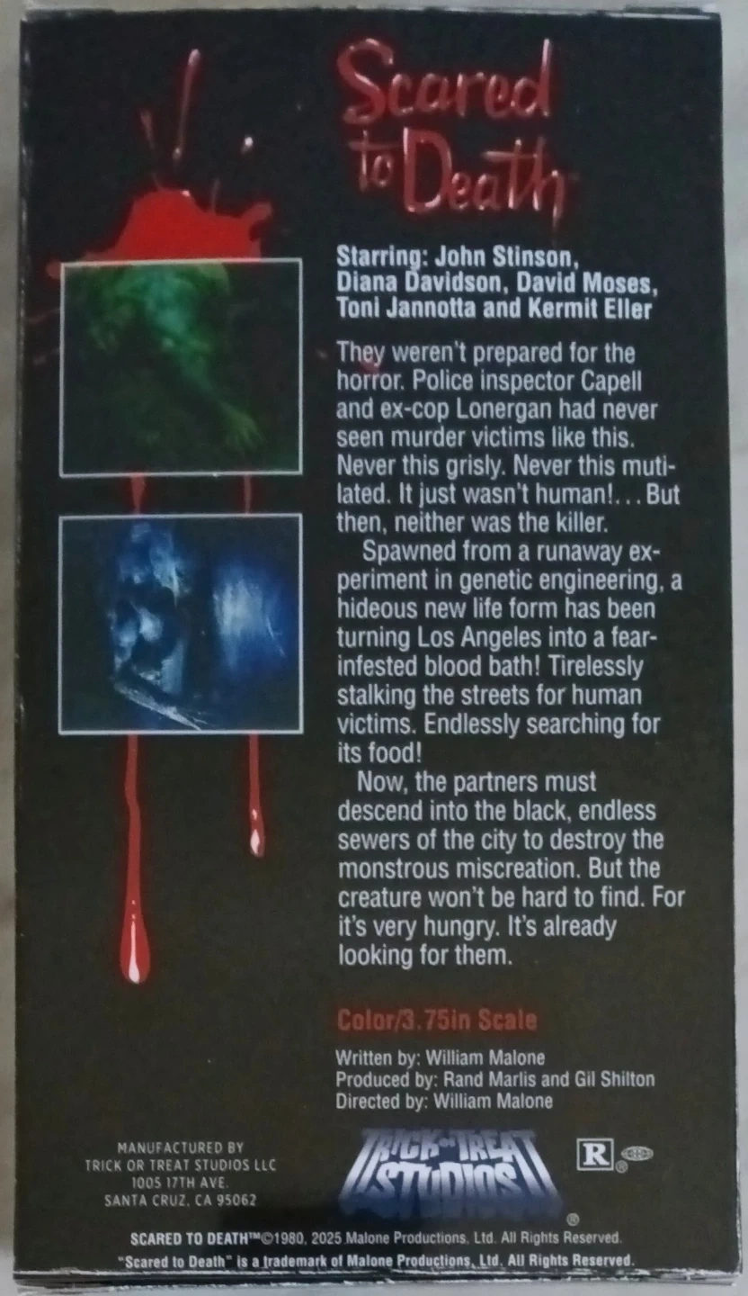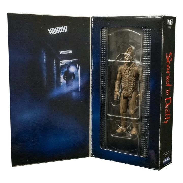 This retro-style collectible comes packaged in a VHS-inspired collector’s box with a magnetic flip front, complete with a cassette-shaped blister tray for that authentic rental store throwback feel. A must-have for fans of deep-cut horror and retro collectibles!