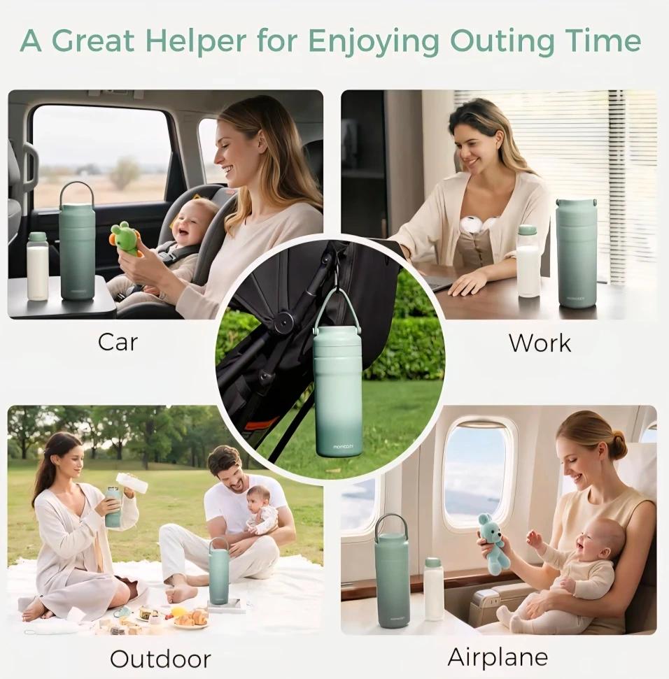 This Momcozy portable breast milk cooler keeps milk cold for over 24 hours. It's BPA-free and includes one bottle and an ice pack insert. Compact and portable for on-the-go use!