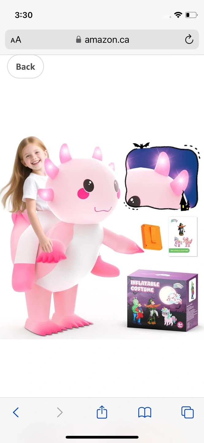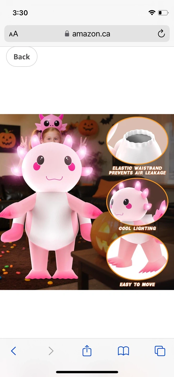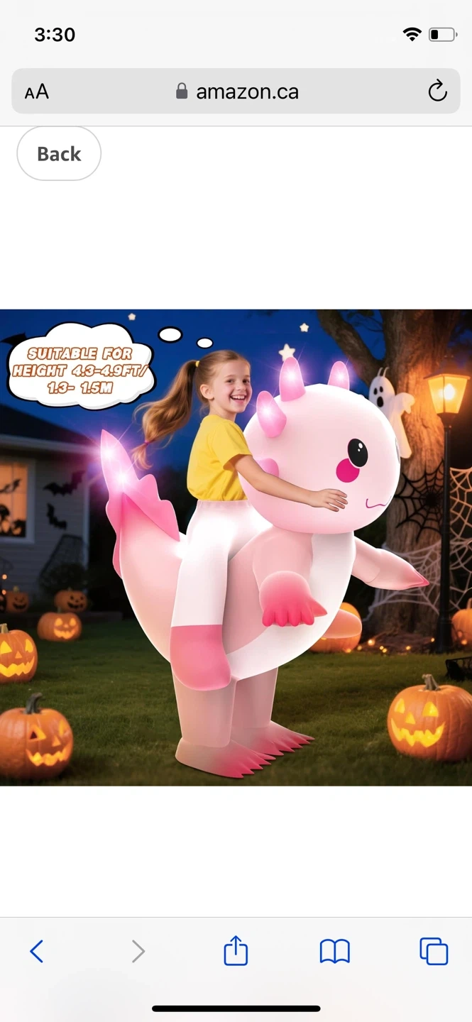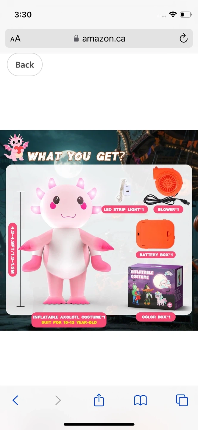 Get ready to make a splash with this adorable axolotl inflatable costume! It's suitable for heights of 4.3-4.9 feet (1.3-1.5m). It features cool lighting and is easy to move in. Batteries are not included; it uses six or seven 1.5V AA batteries.