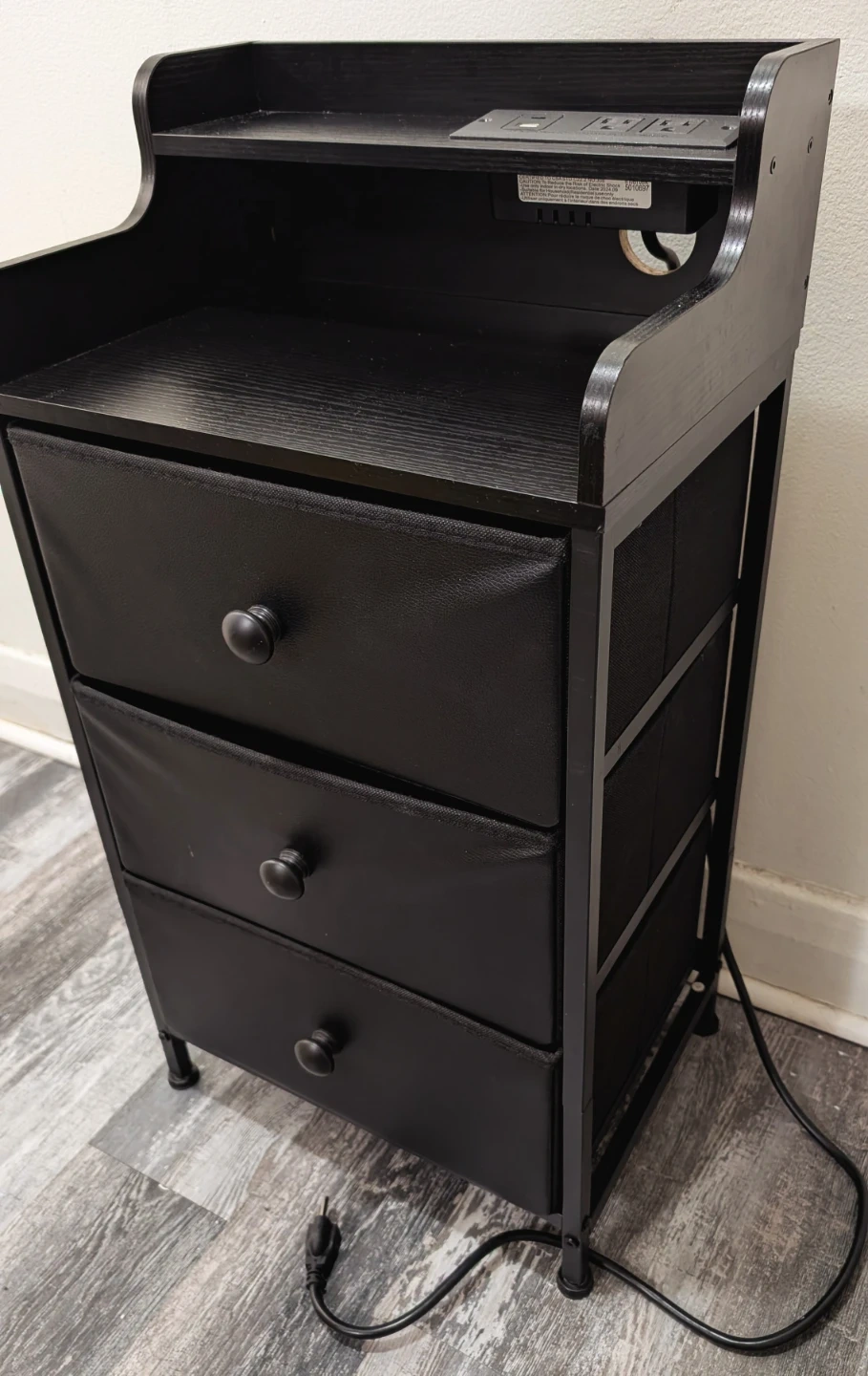Black Fabric Nightstand with a Charging Station
