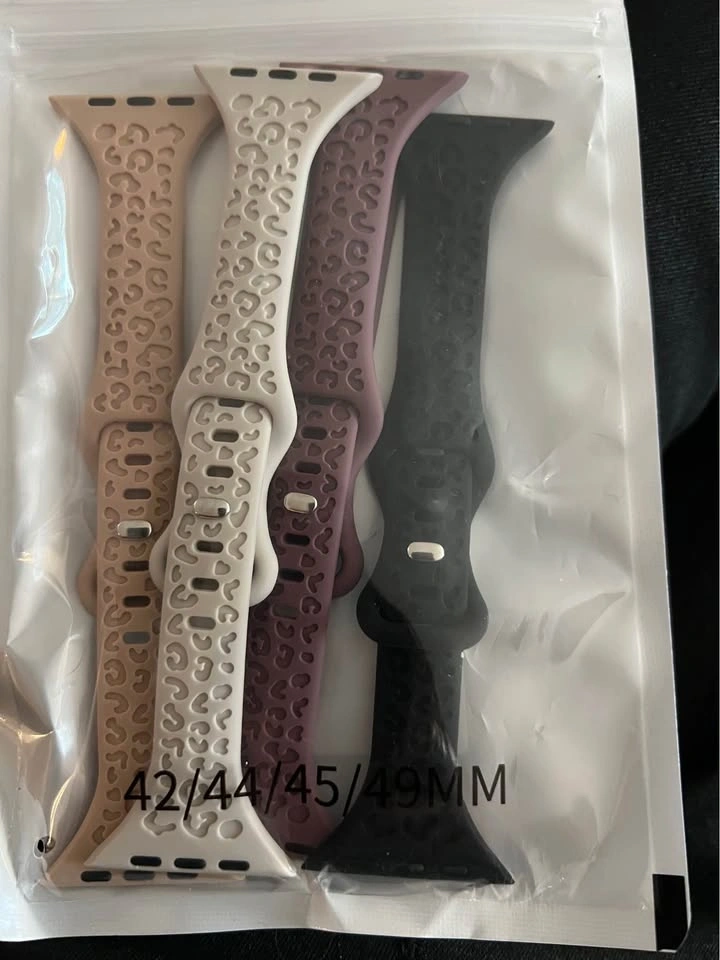 4 new silicone leopard watch bands that fit Apple Watch 42/44/45/49mm. Best suited for 42mm. 3 new thermoplastic screen protector cases for 42mm. 2 are clear at the sides, 1 is black. All for $15. Pickup PA (evenings) or FW (days).