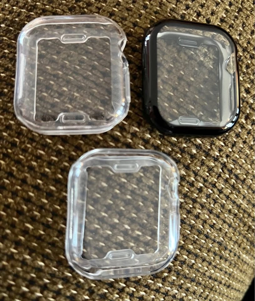 4 new silicone leopard watch bands that fit Apple Watch 42/44/45/49mm. Best suited for 42mm. 3 new thermoplastic screen protector cases for 42mm. 2 are clear at the sides, 1 is black. All for $15. Pickup PA (evenings) or FW (days).