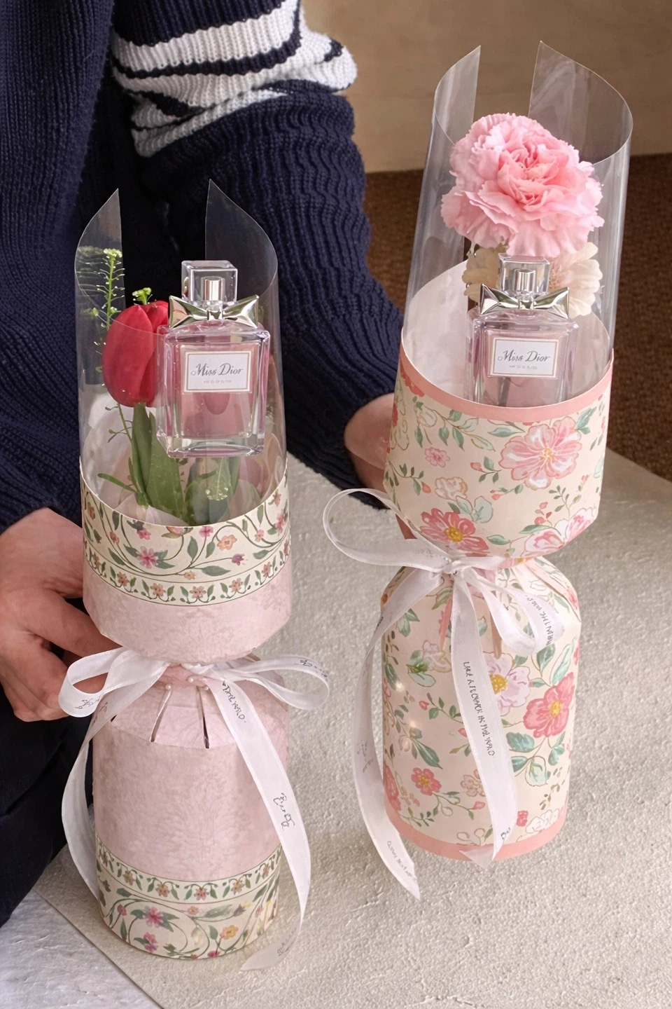 This is a bottle of Miss Dior , presented with a decorative flower bouquet. It's a lovely gift set. Great for every occasion special for easter