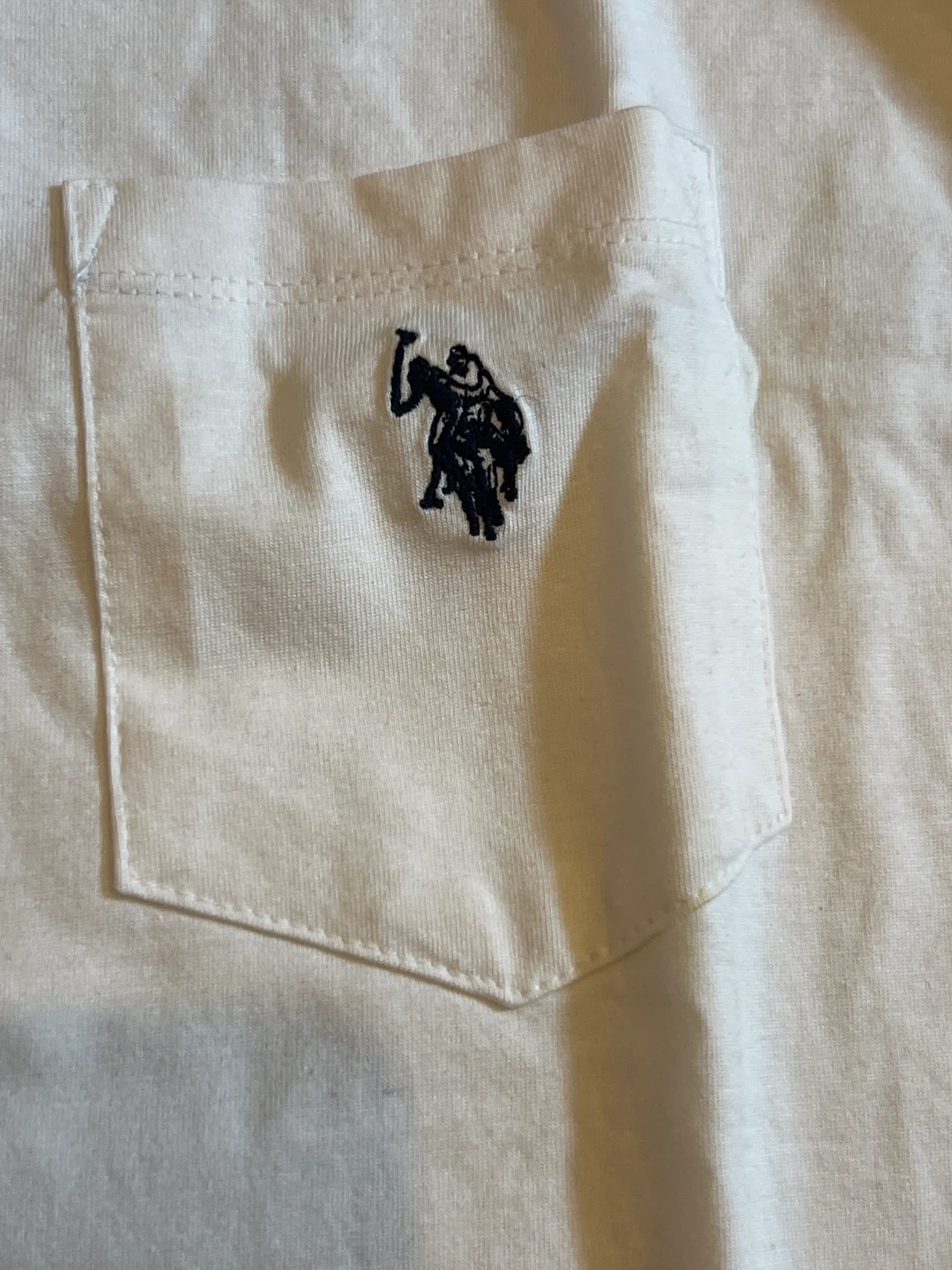 This U.S. Polo Assn. long sleeve t-shirt is white with a chest pocket. It's 100% cotton. Made in Bangladesh. A comfortable everyday basic!