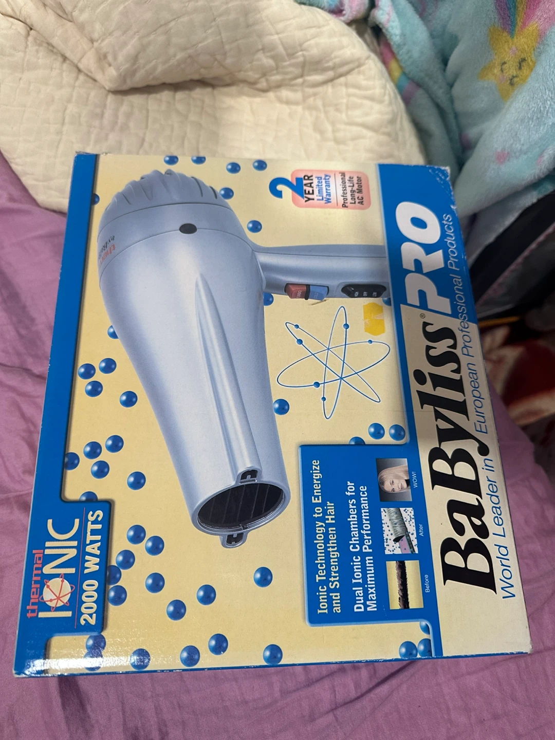 This is a BaBylissPRO Thermal Ionic hair dryer. It's 2000 watts and includes a professional long-life AC motor. Ionic technology helps to energize and strengthen hair.