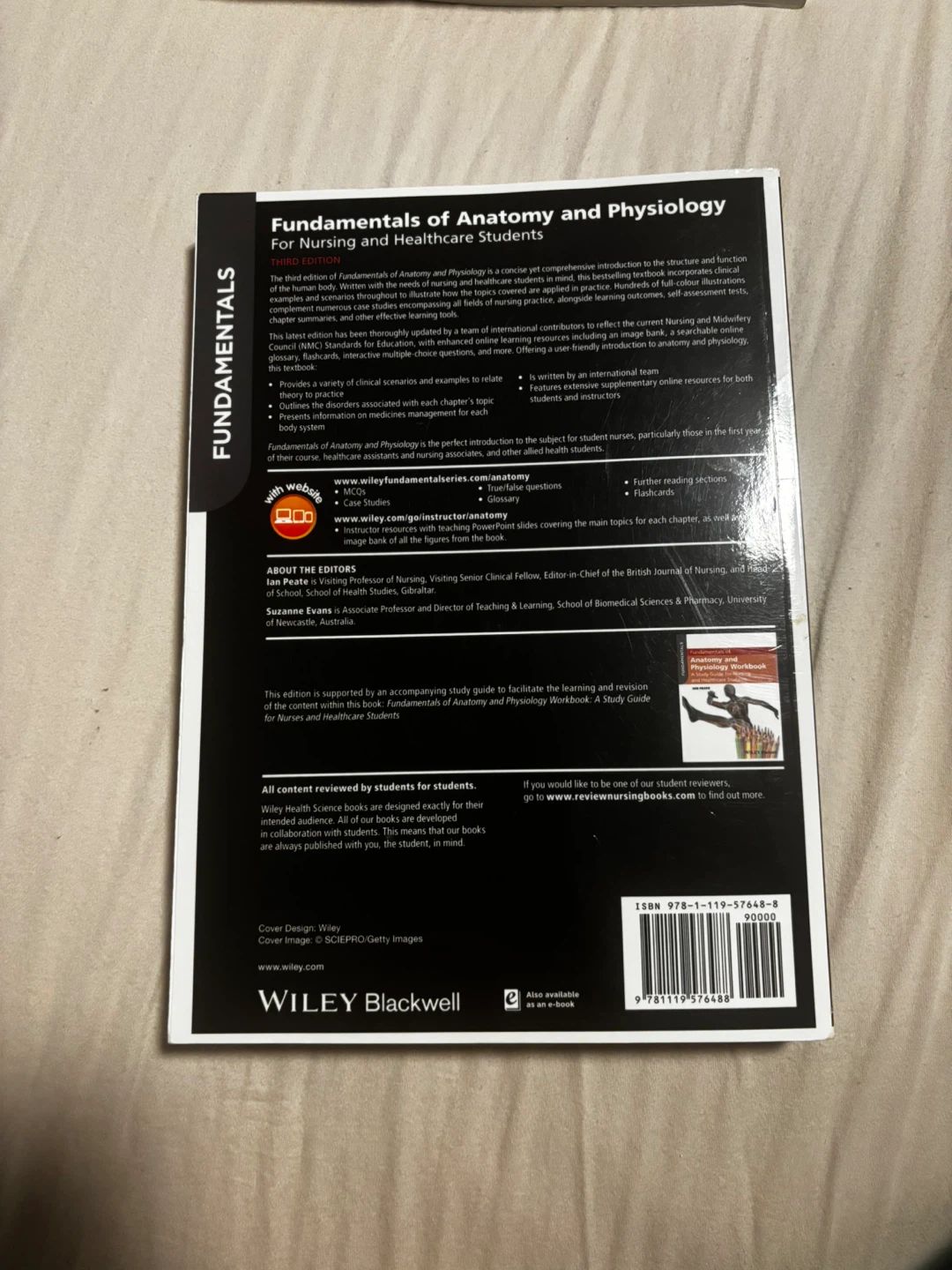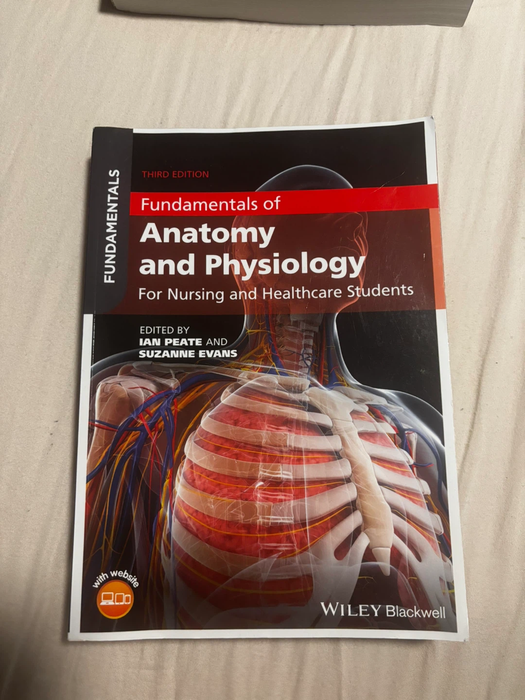 Selling the textbook Fundamentals of Anatomy and Physiology for Nursing and Healthcare Students, Third Edition by Ian Peate and Suzanne Evans! It's in great condition and perfect for nursing students