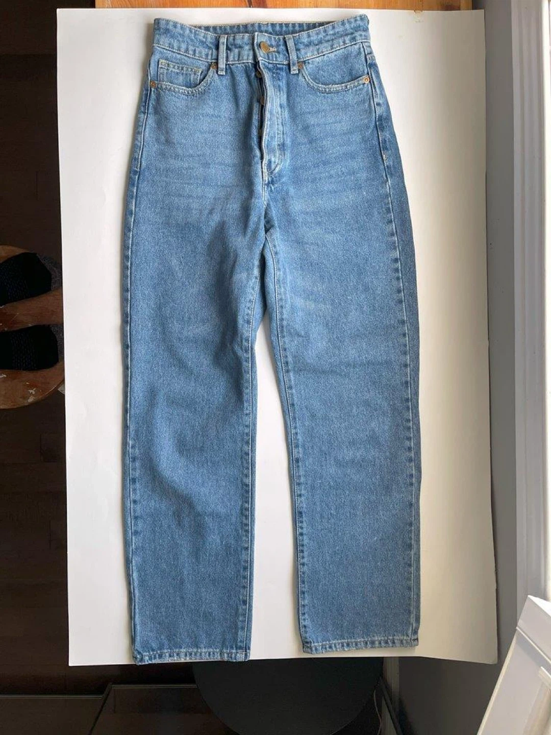 Selling a pair of SSense Designer By Malene Birger jeans in size 27 - fits small, more like 25/26. Good condition. Non-stretch thick high-quality organic cotton denim. Button fly.