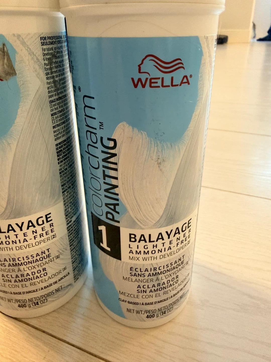 This is a Wella Colorcharm Painting Balayage lightener. It's ammonia-free and clay-based. Each container is 400g (14 oz).