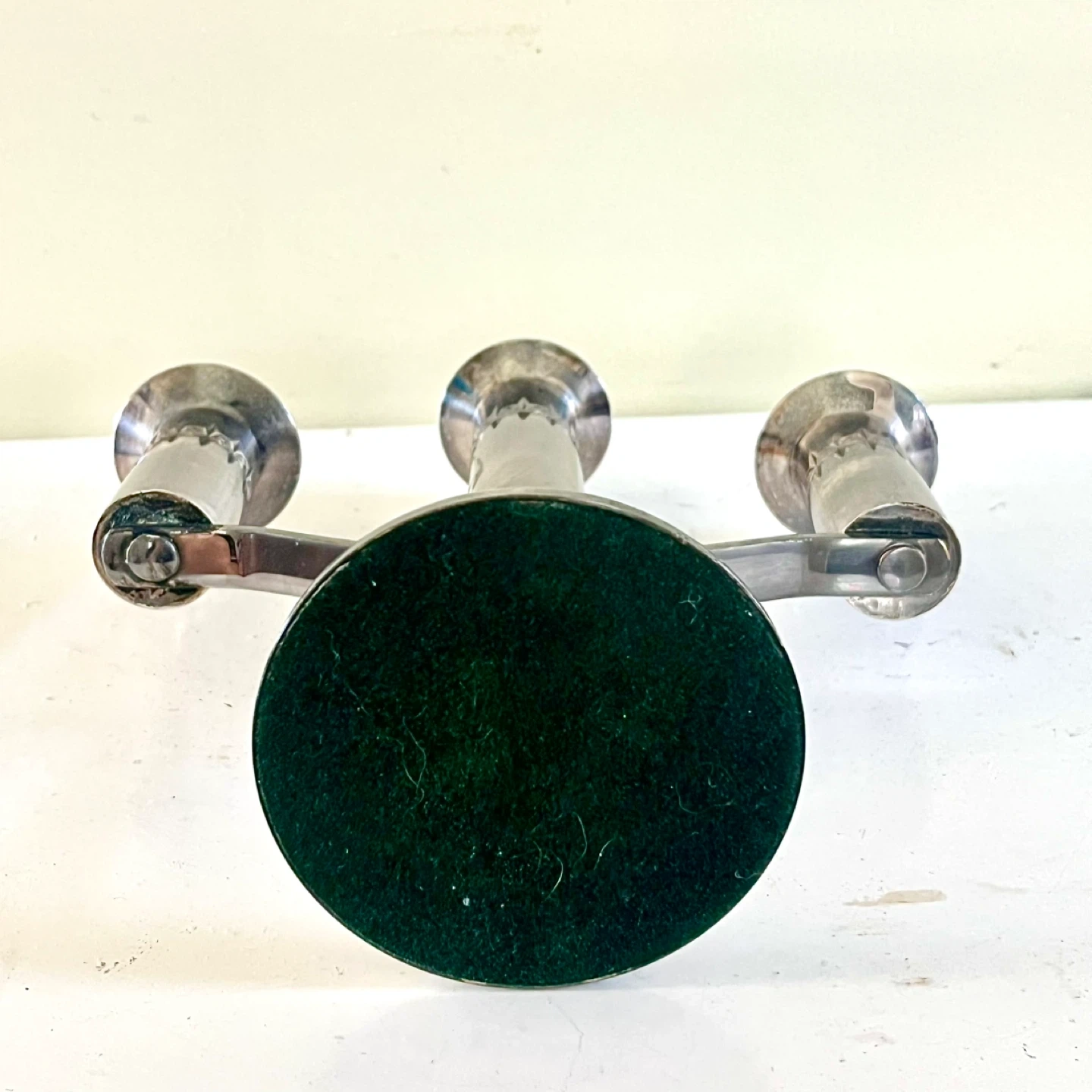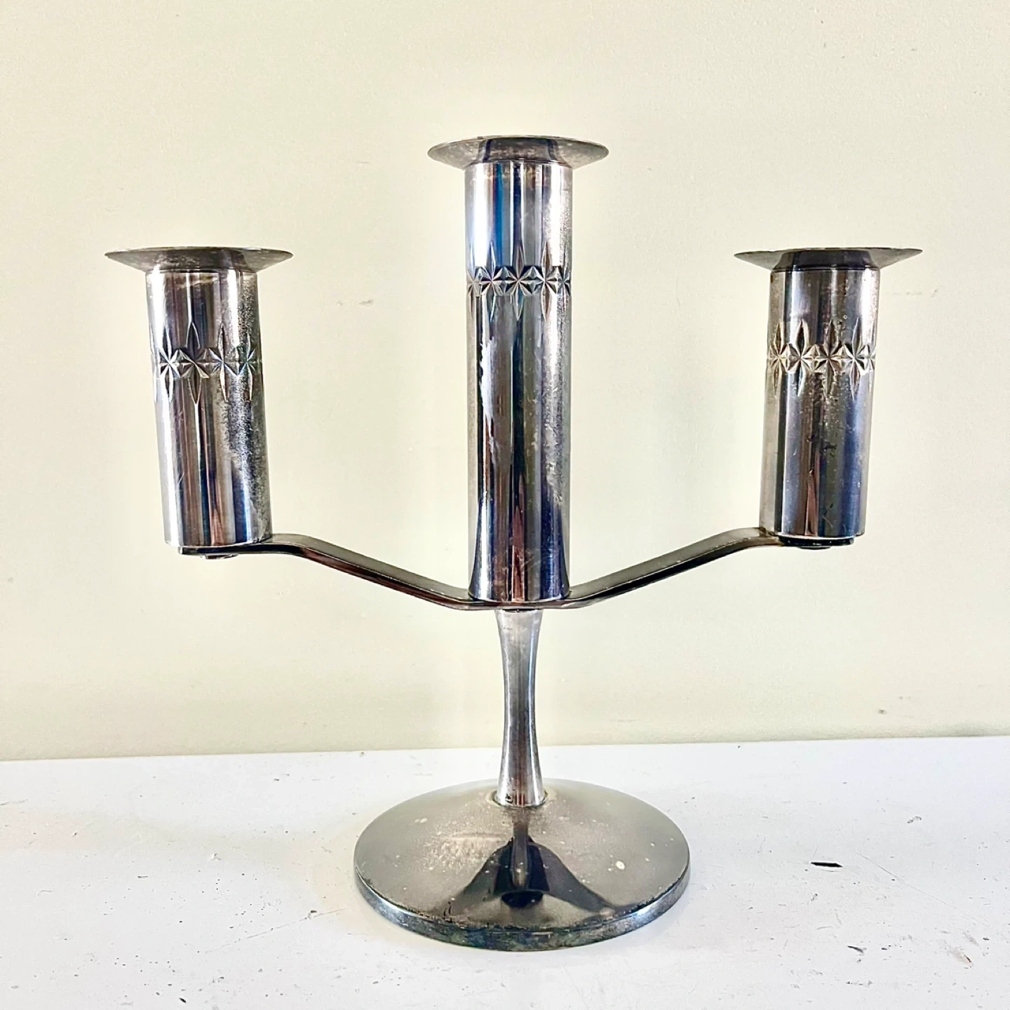 Mid century Atomic Starburst Primrose Plate silver plated candelabra. Good vintage condition.
