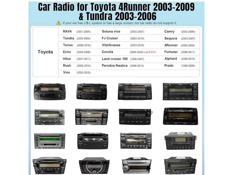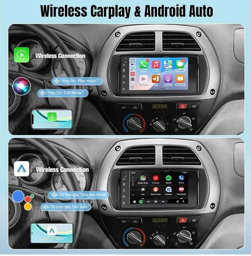 Android car stereo for Toyota 4Runner (2003-2009), Tundra (2003-2006), and Sequoia (2003-2007). Features wireless CarPlay and Android Auto with a 7-inch IPS touchscreen and backup camera.