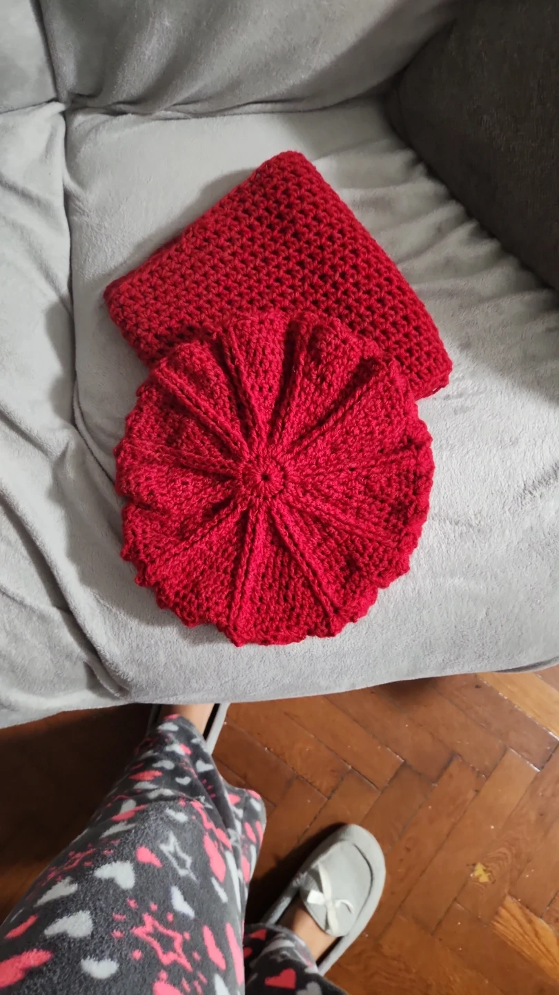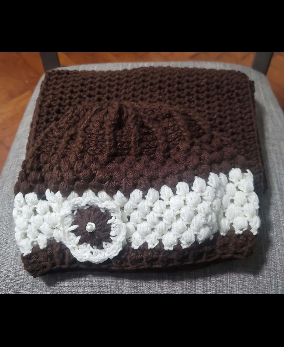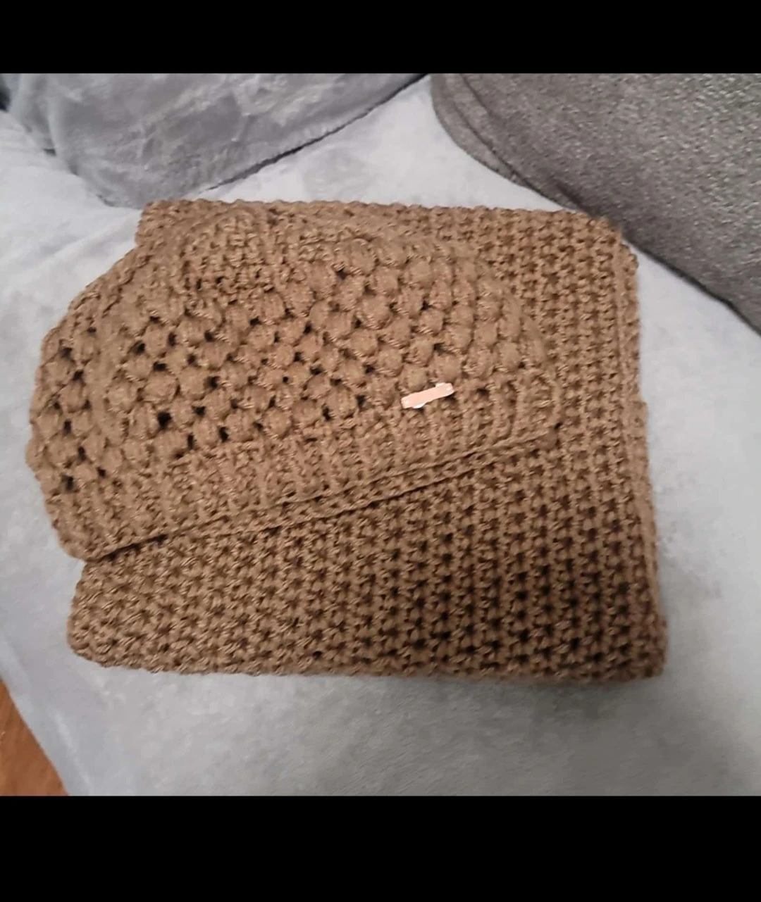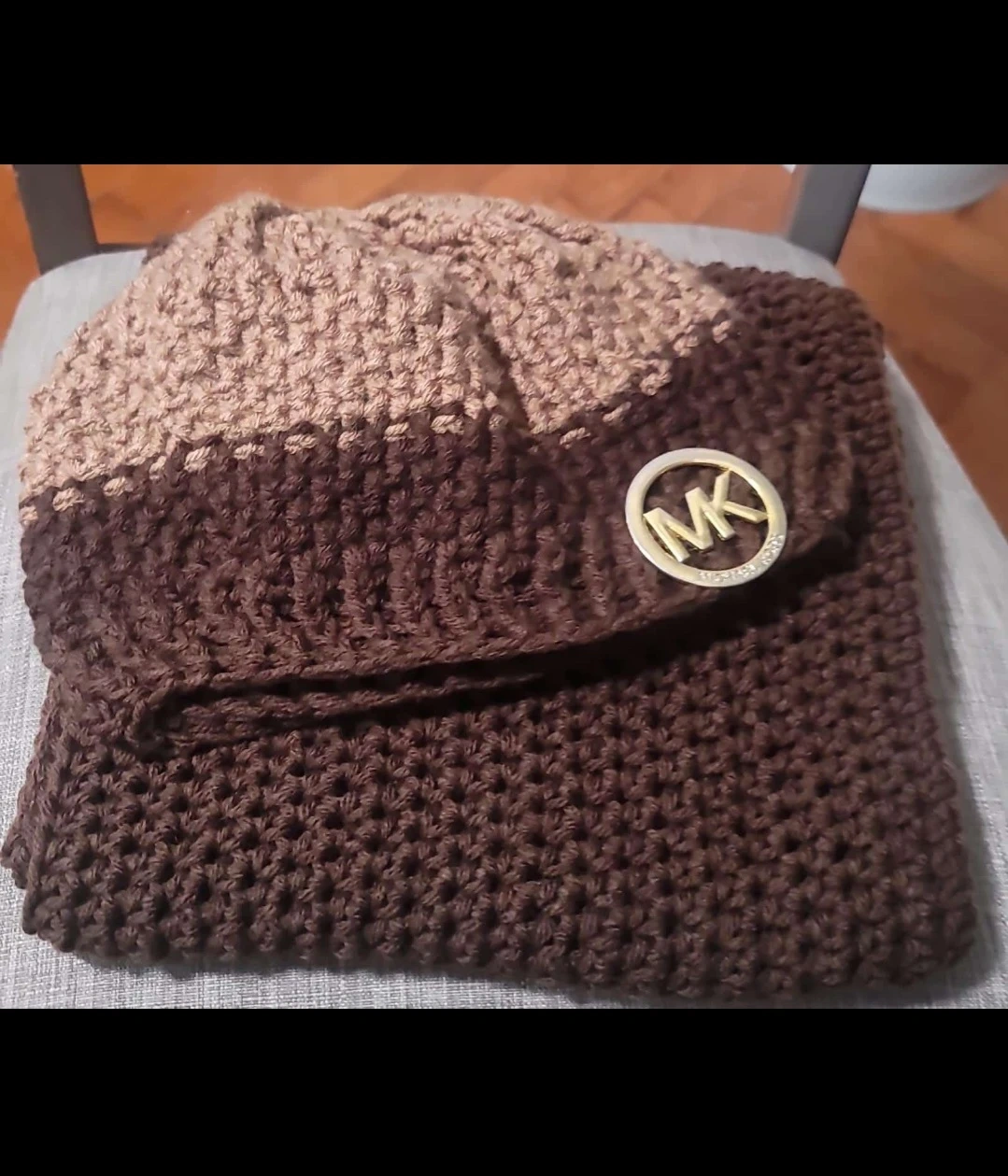 Selling these handmade crocheted hat and scarf sets! They are available in various colors including brown, red, blue, and purple. These sets are perfect for keeping you warm and stylish during the colder months. They have a unique, handcrafted look and feel!