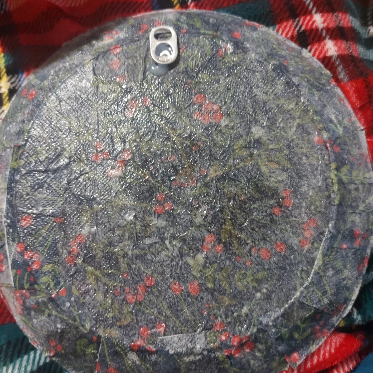 Clear charger plate with red berries and green leaves design