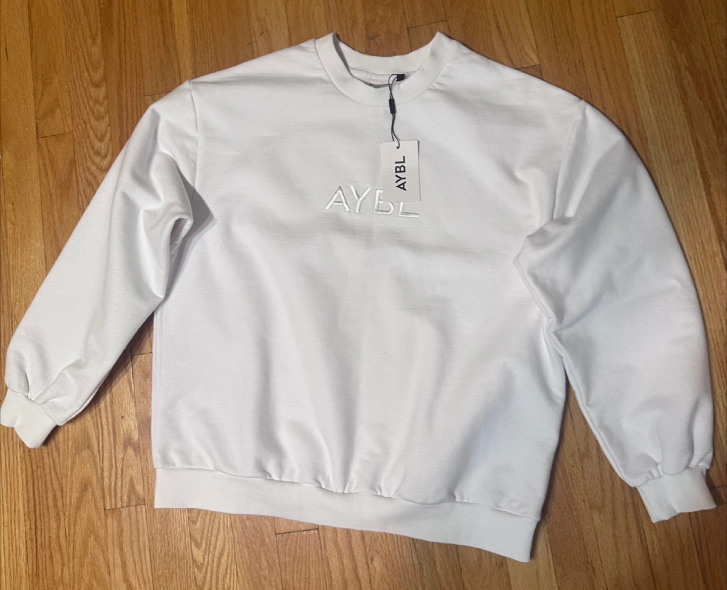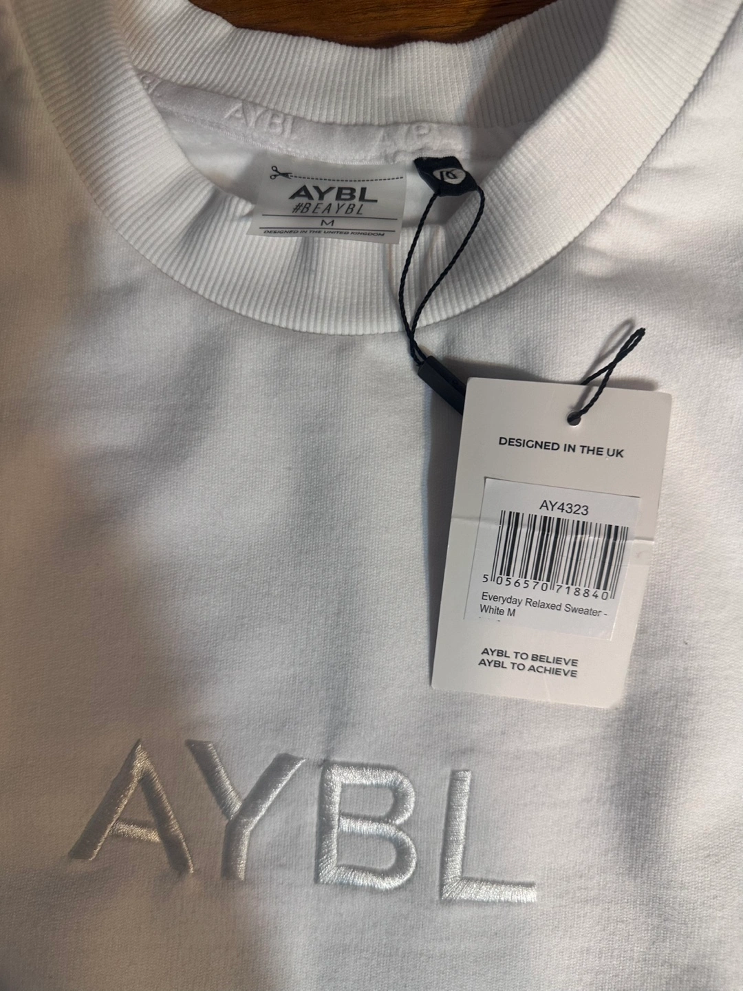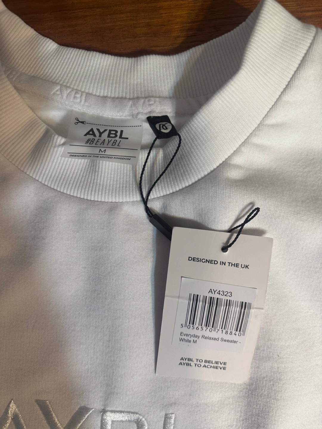 This is a brand new AYBL Everyday Relaxed Sweater in white, size medium! It's designed in the UK. Perfect for a relaxed and comfy fit. Giving comfort a fresh and modern feel, our Everyday Relaxed Sweater is designed with our thickest, heaviest fabric yet, so you can feel warm and snug all year round. The clean aesthetic means this jumper is as versatile as it is cosy, making it the perfect piece to wear on those off-duty days or when heading to and from the gym. Complete with delicate tonal embroidery and a beautifully soft finish, you’ll be lounging in pure luxury in no time. 95% Cotton, 5% Elastane Ultra soft, thick fabric Cosy relaxed fit Rib cuff, hem and neckline Tonal embroidered AYBL logo Pick Up Pape and Danforth