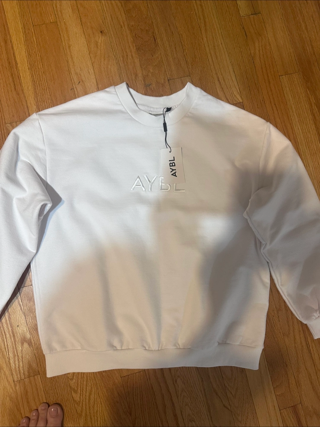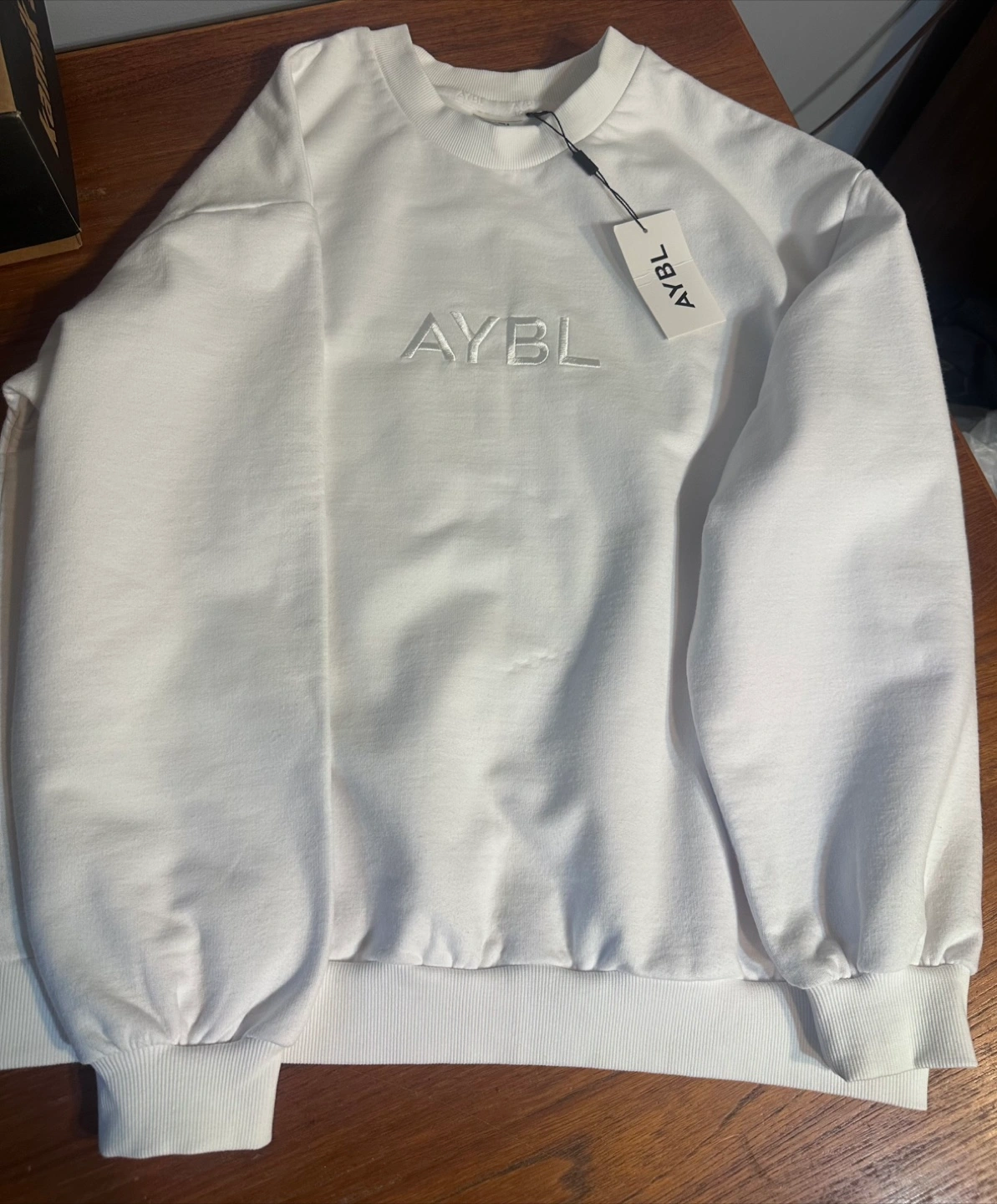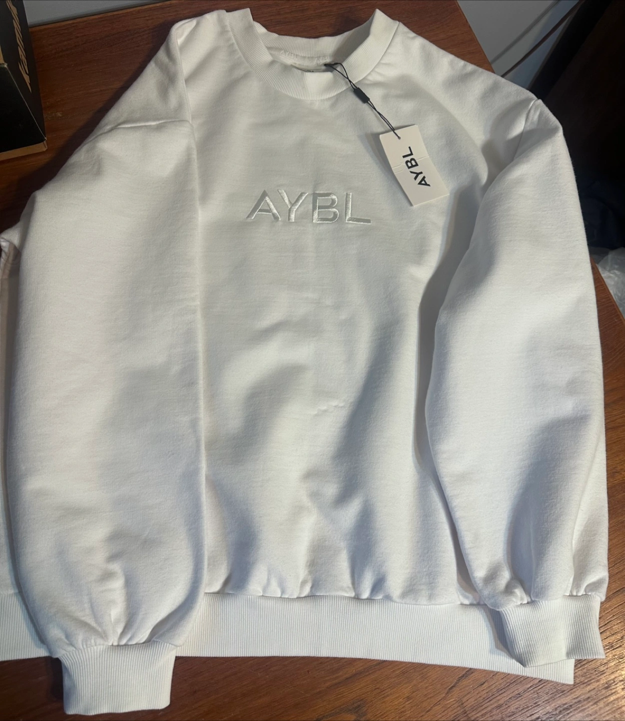 This is a brand new AYBL Everyday Relaxed Sweater in white, size medium! It's designed in the UK. Perfect for a relaxed and comfy fit. Giving comfort a fresh and modern feel, our Everyday Relaxed Sweater is designed with our thickest, heaviest fabric yet, so you can feel warm and snug all year round. The clean aesthetic means this jumper is as versatile as it is cosy, making it the perfect piece to wear on those off-duty days or when heading to and from the gym. Complete with delicate tonal embroidery and a beautifully soft finish, you’ll be lounging in pure luxury in no time. 95% Cotton, 5% Elastane Ultra soft, thick fabric Cosy relaxed fit Rib cuff, hem and neckline Tonal embroidered AYBL logo Pick Up Pape and Danforth