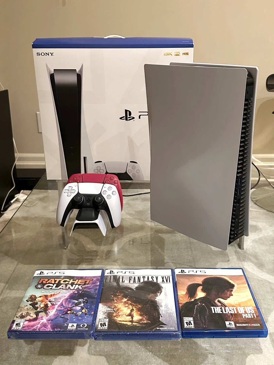 PS5 PlayStation 5 – Like New + 3 games + 2 controllers