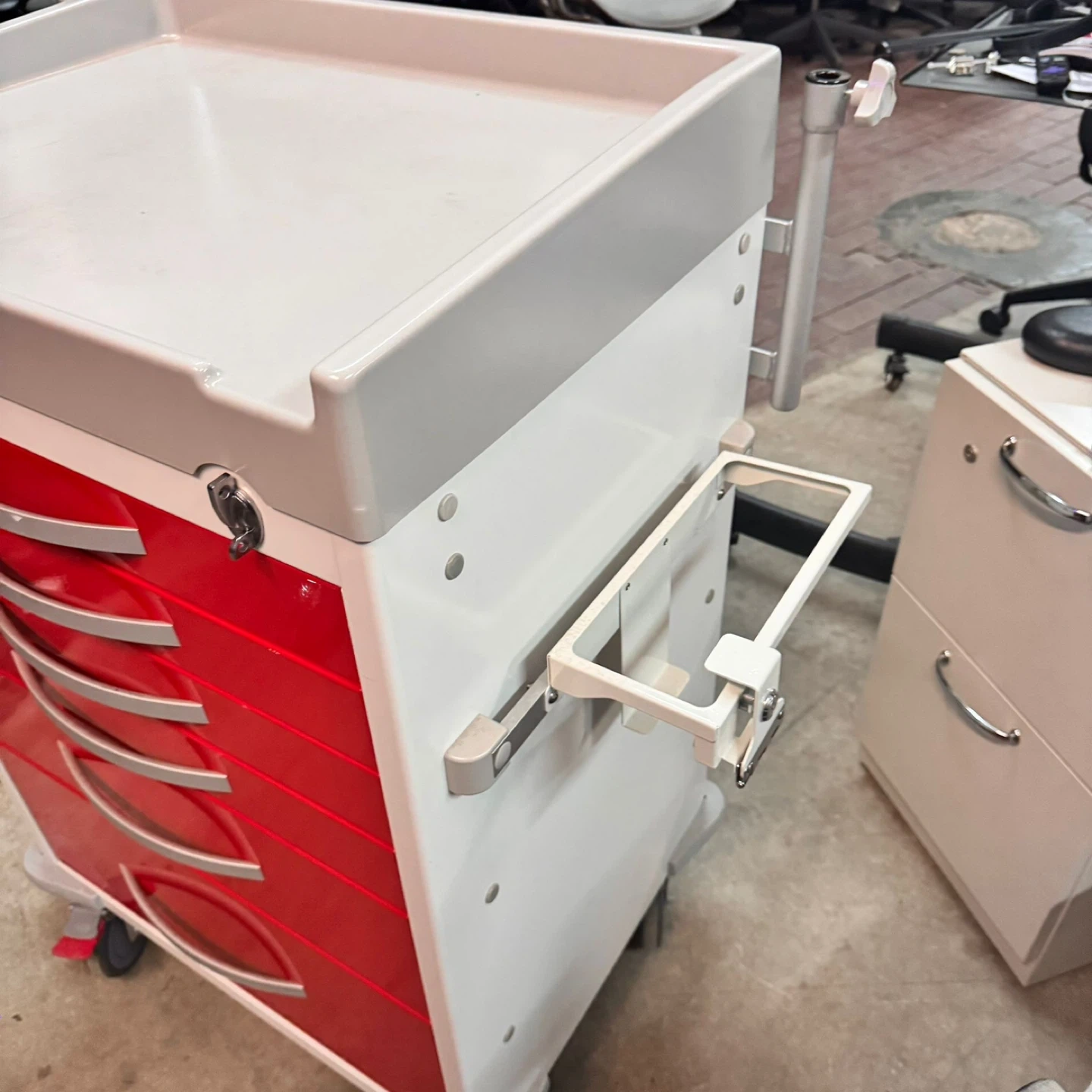 β’ Rugged white frame with 5 deep red drawers