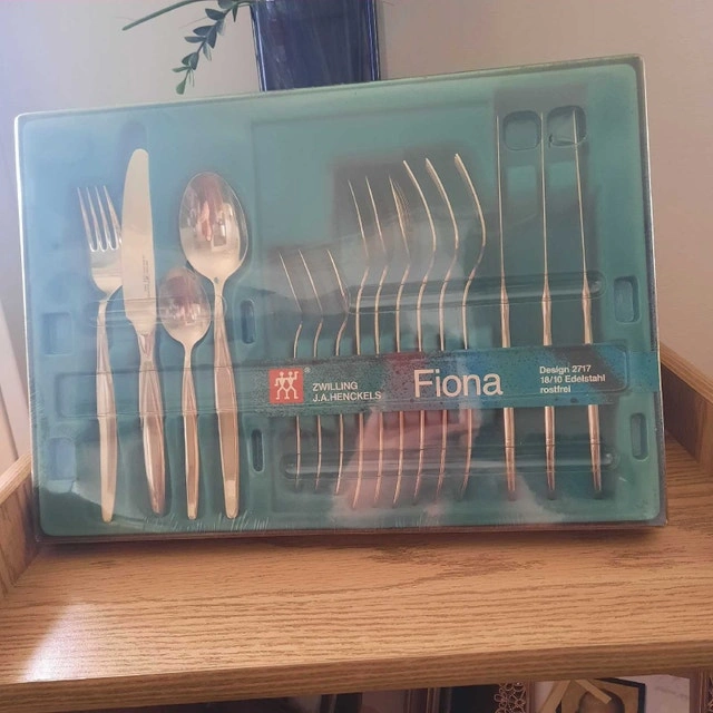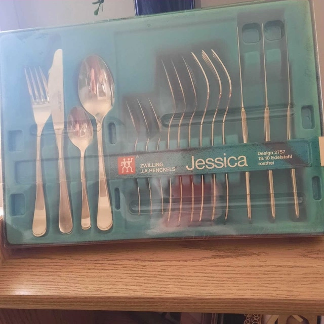3 boxes of Fiona Jessica Spirit flatware, 16-piece sets that serve 4 people. Never opened. Originally paid $99 each, selling for $50 each.