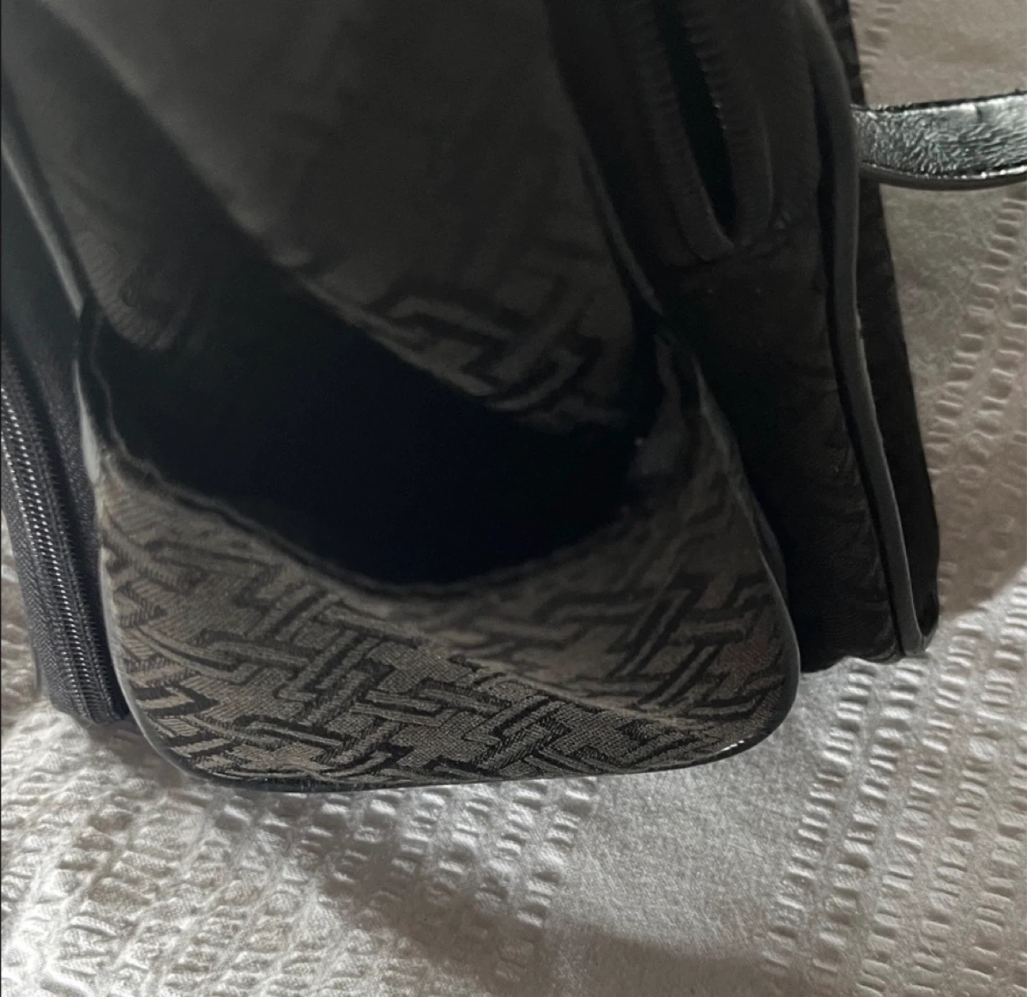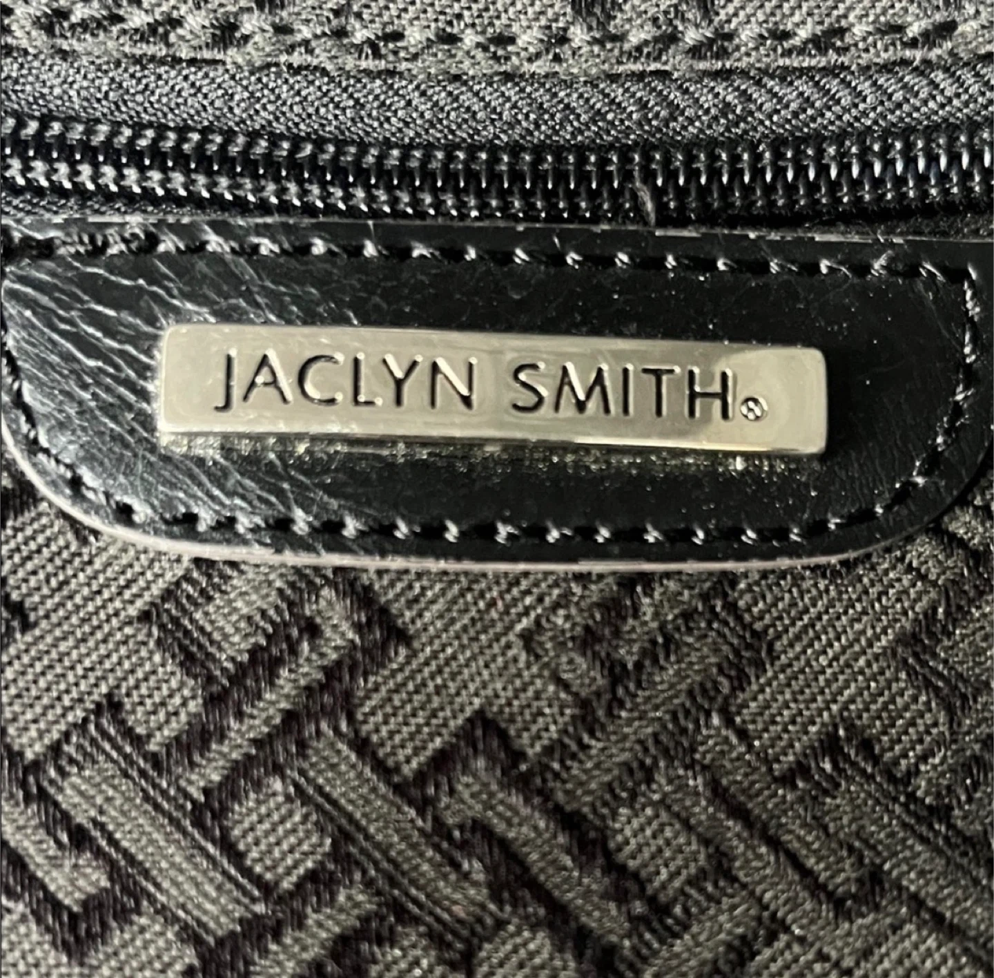 This Jaclyn Smith tote bag is a stylish and practical accessory. It features a classic pattern and multiple zippered compartments for organization. Its durable construction makes it a great everyday bag.