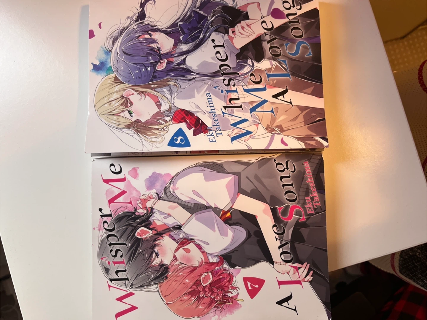 Manga volumes 7 and 8 of Whisper Me A Love Song by Eku Takeshima. Story by Eku Takeshima.