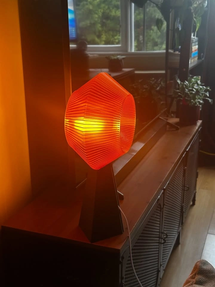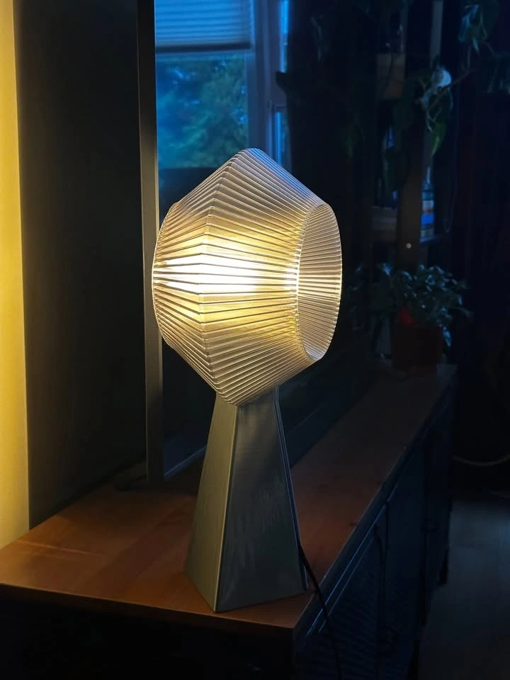 Each lamp is 3D-printed in small batches in Vancouver, then hand-finished for a smooth surface finish and a subtle architectural look. Great for desks, shelves, or entry tables