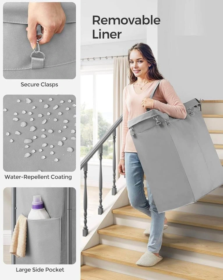 Large 2-section rolling laundry hamper with a sturdy steel frame, removable liner, and smooth wheels for easy movement. Perfect for organizing laundry in any room.