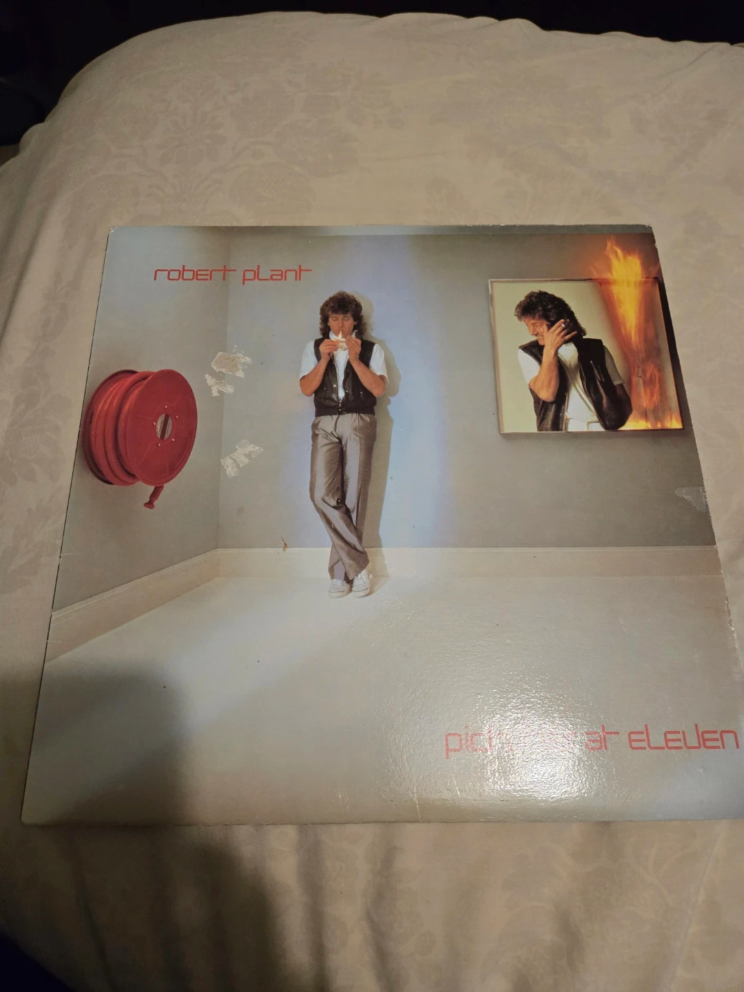 Selling a Robert Plant vinyl record, "Pictures at Eleven"! The record is in good condition and ready to be enjoyed by a new listener. A great addition to any vinyl collection! Some damage to jacket not bad though.