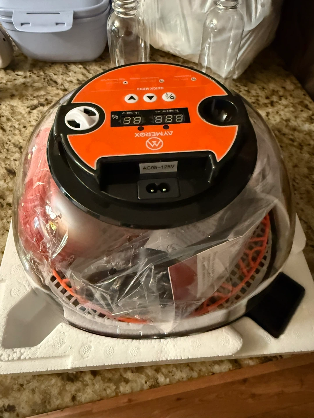 Selling an Aymerox egg incubator. It appears to be in excellent condition and comes in its original packaging. Perfect for hatching your own chicks!
