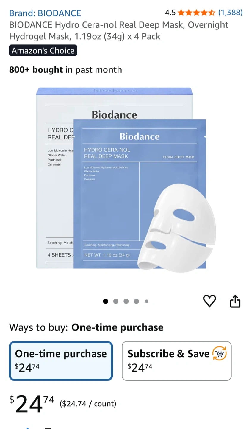 BIODANCE Hydro Cera-nol Real Deep Mask (1 pack X 4 masks)