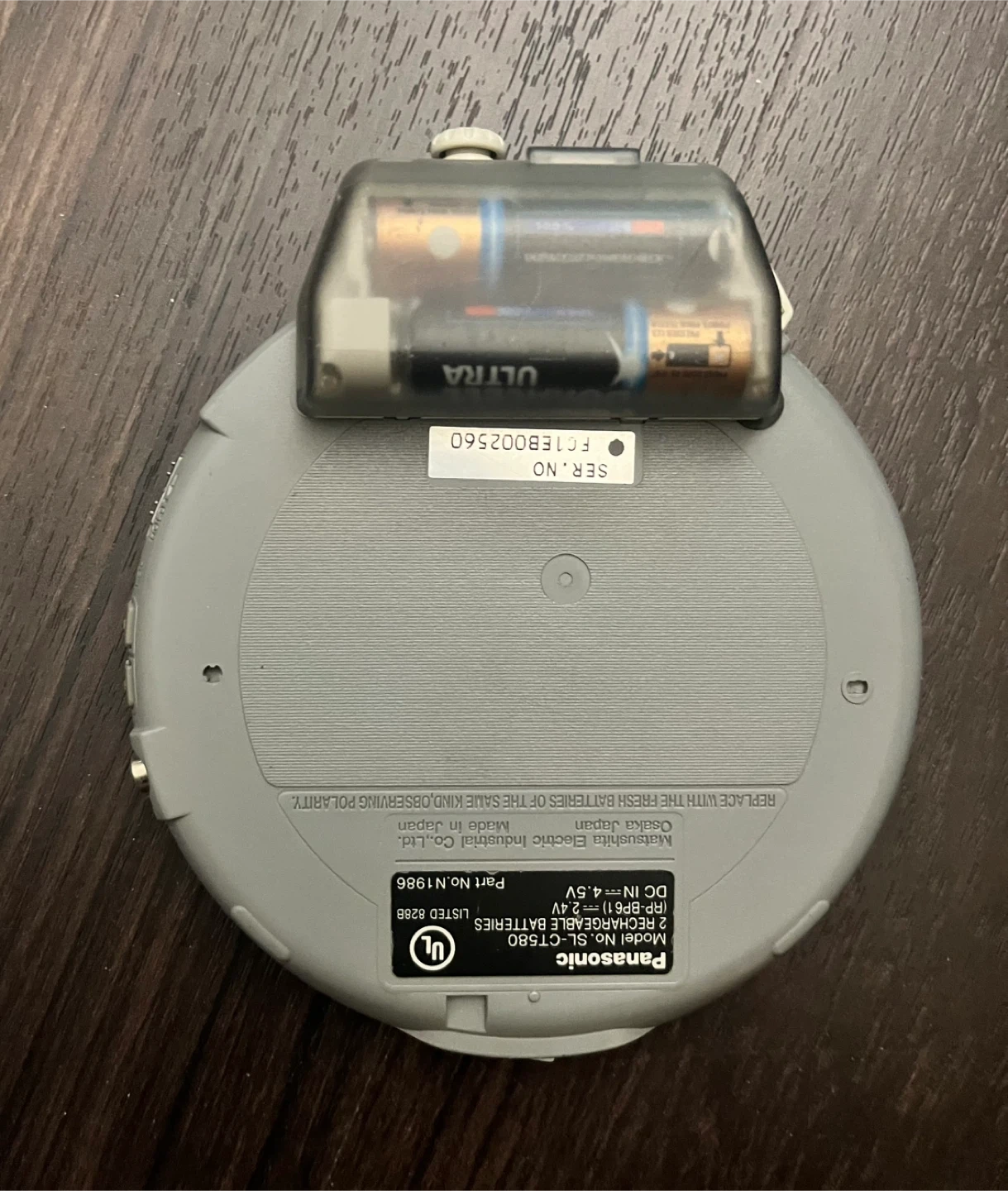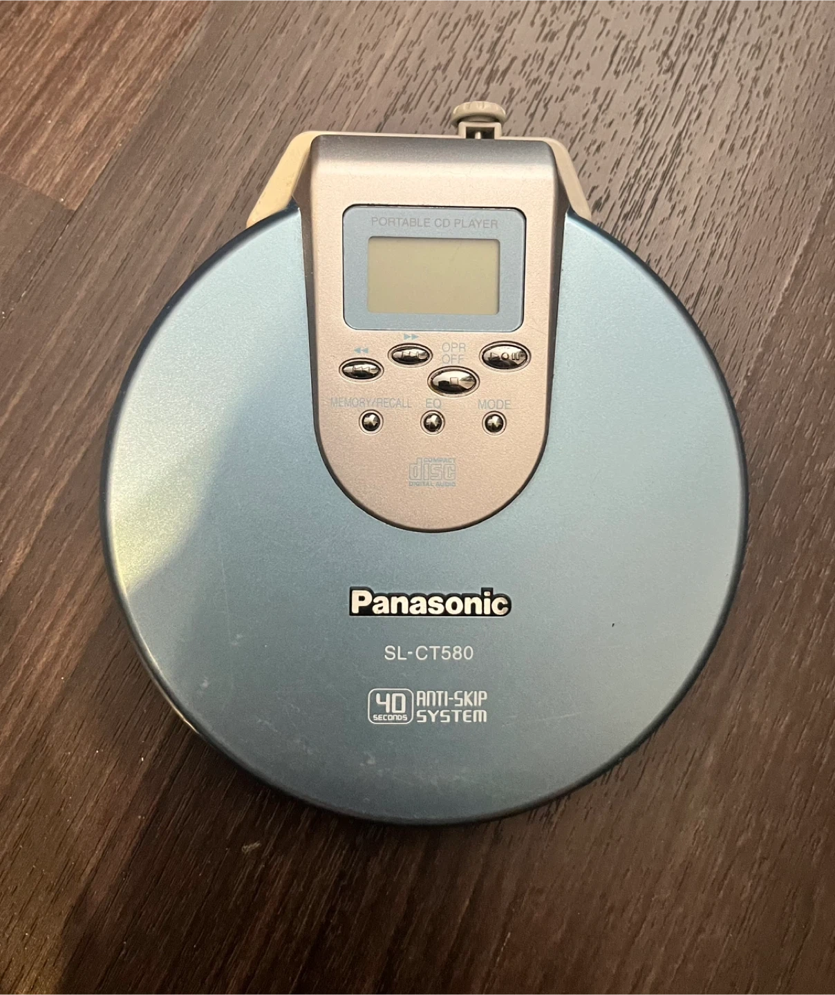 Buy & SellPanasonic SL-CT580 Portable CD Player - BluePanasonic SL-CT580 Portable CD Player - Blue$38Vintage, ultra-slim Panasonic portable CD player, model SL-CT580. It features a 40-second anti-skip system. This unit runs on 2 AA batteries.ConditionGoodBrandPanasonicWHERE TO MEETThe Miller TavernView MapSELLERverifiedAlejandroUnion Station20114 reviews1 chats·4 favorites·61 viewsSEND CHAT TO SELLERHi Alejandro! I’m interested in your listing.Hi Alejandro! I’m interested in your listing.Get the Karrot app to chatSign In to chat