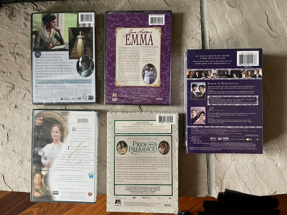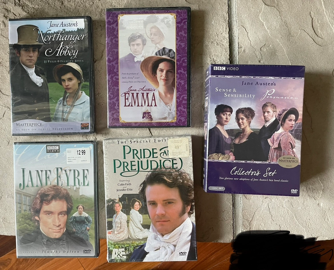 • Jane Austen’s sense and sensibility DVD set by BBC is brand new and retailing for $83 CAD + tax on Amazon — selling for $15(sealed)