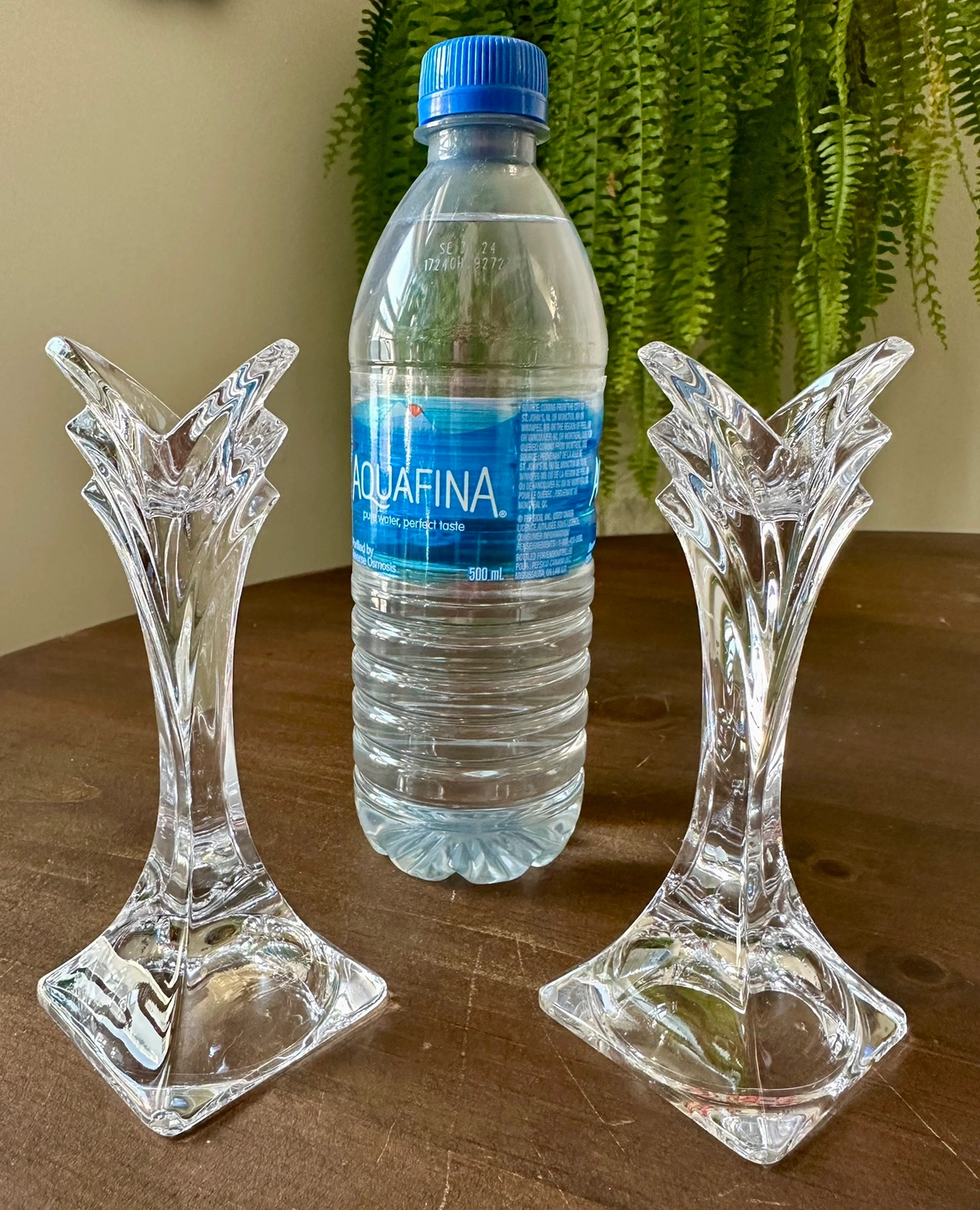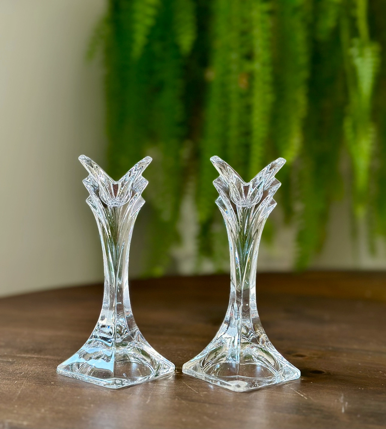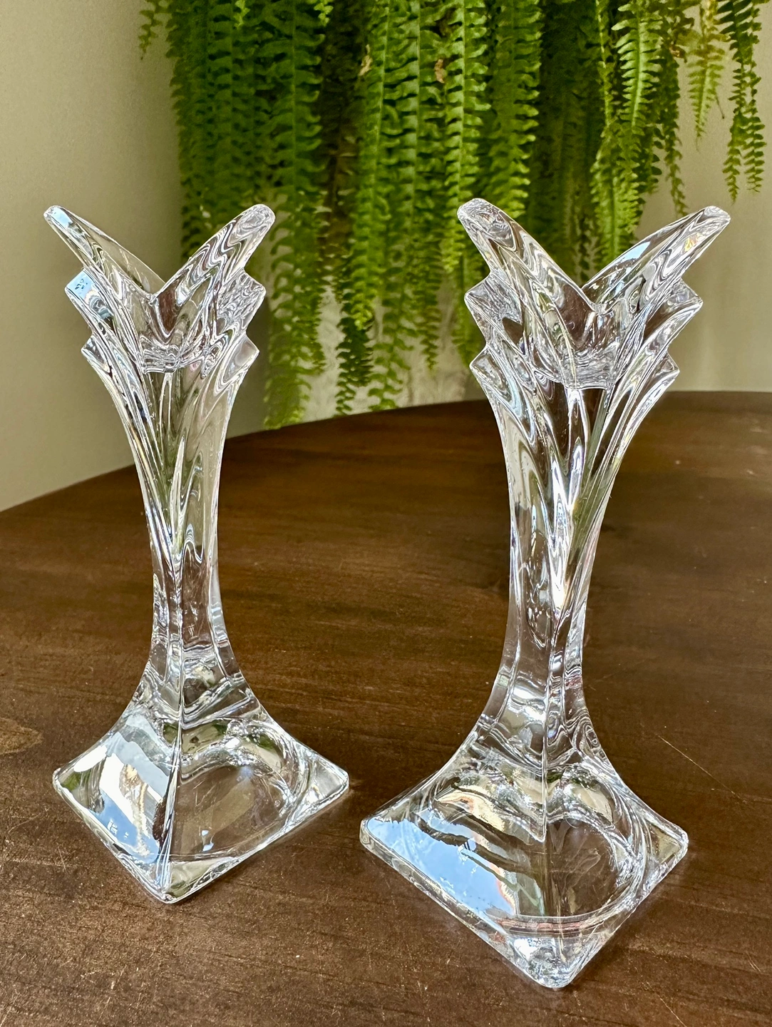 Pair of Vintage Mikasa Lead Crystal Art Deco Candlesticks