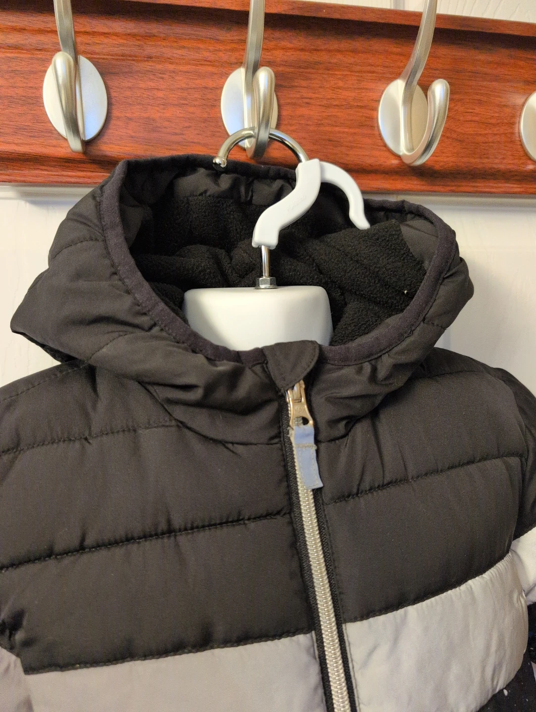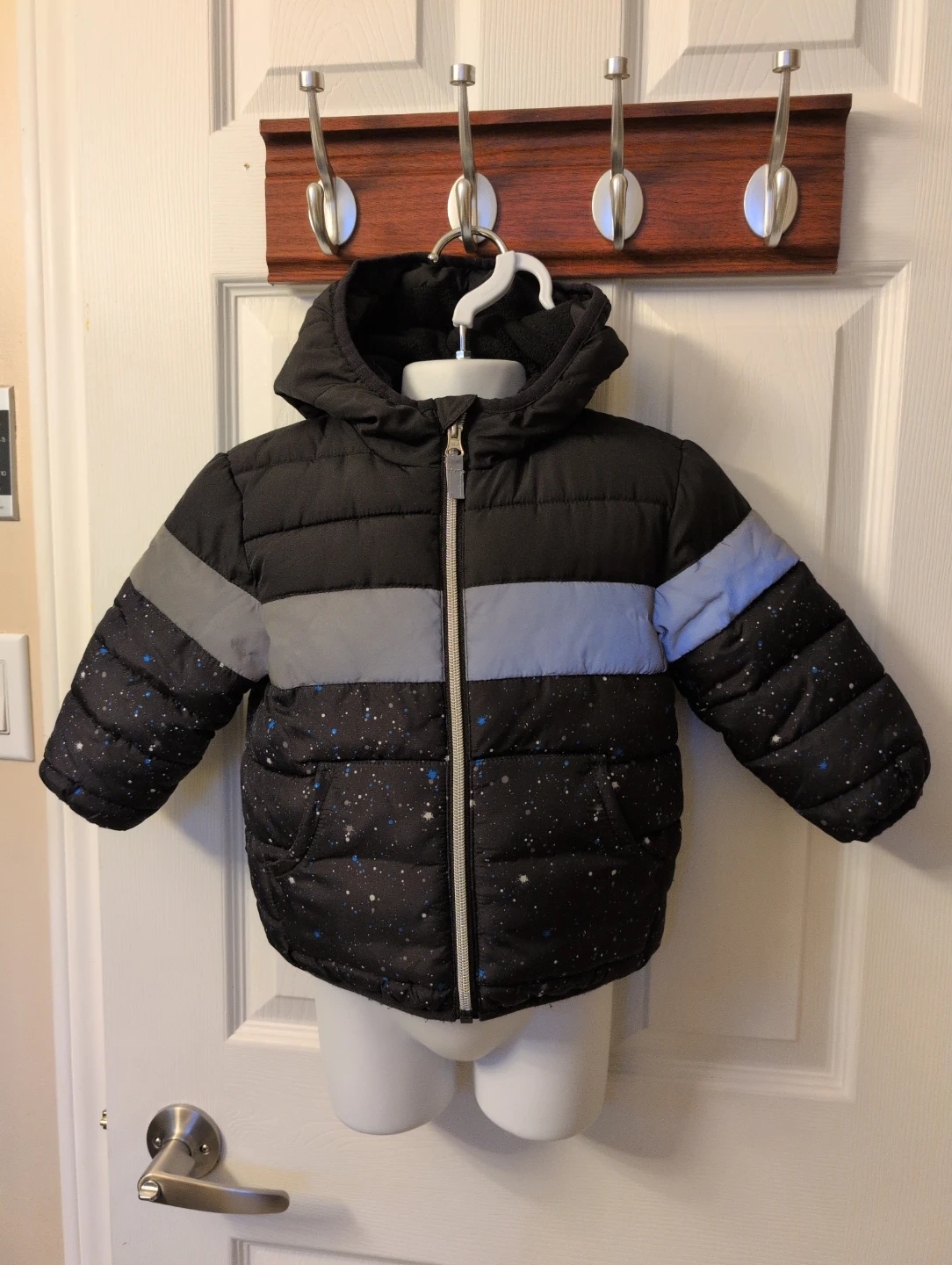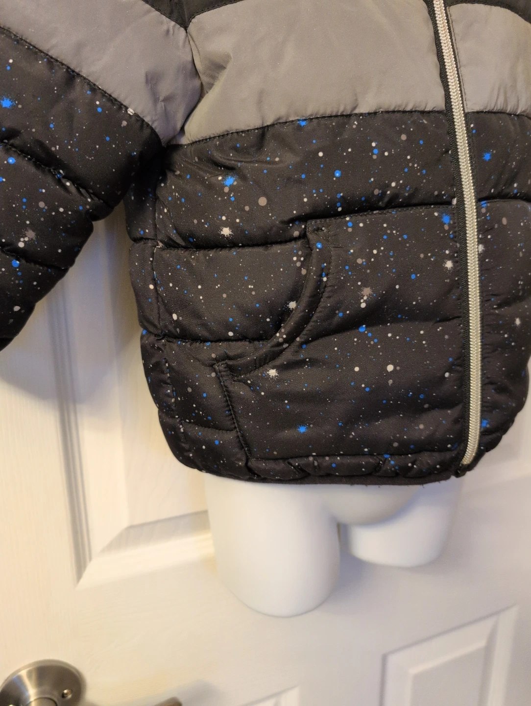 Buy & SellGeorge Puffer Jacket with HoodGeorge Puffer Jacket with Hood$10Black puffer jacket by George with a hood. Features a speckled pattern with blue and grey accents. Has a full zipper closure and pockets.Age1-2 yearsWHERE TO MEETCheck LocationView MapSELLERverifiedNathalieClarence-Rockland650 reviews0 chats·0 favorites·3 viewsSEND CHAT TO SELLERHi Nathalie! I’m interested in your listing.Hi Nathalie! I’m interested in your listing.Get the Karrot app to chatSign In to chat