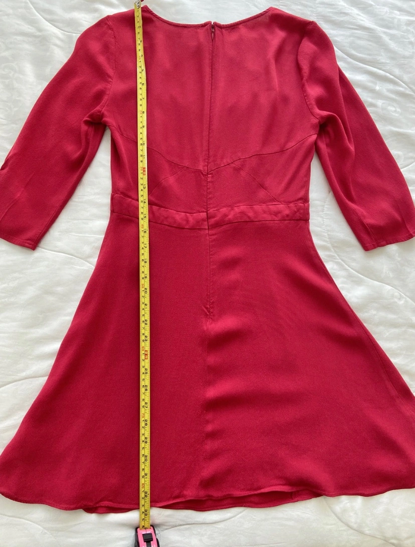 Barely worn, like new Cooperative dress (from Urban Outfitters). 3/4 sleeves. Size 4. Button details at neckline and on sleeves. Back zip. Can be worn with a belt. 100% rayon. Measurements are shown in photos.
