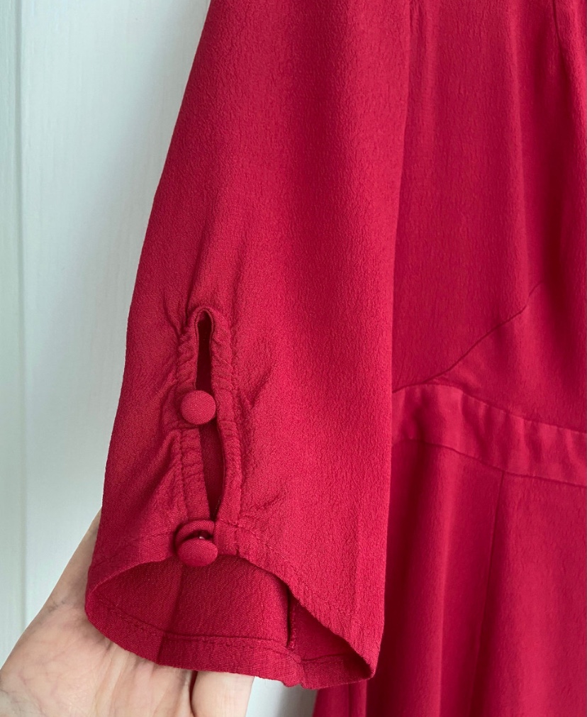 Barely worn, like new Cooperative dress (from Urban Outfitters). 3/4 sleeves. Size 4. Button details at neckline and on sleeves. Back zip. Can be worn with a belt. 100% rayon. Measurements are shown in photos.