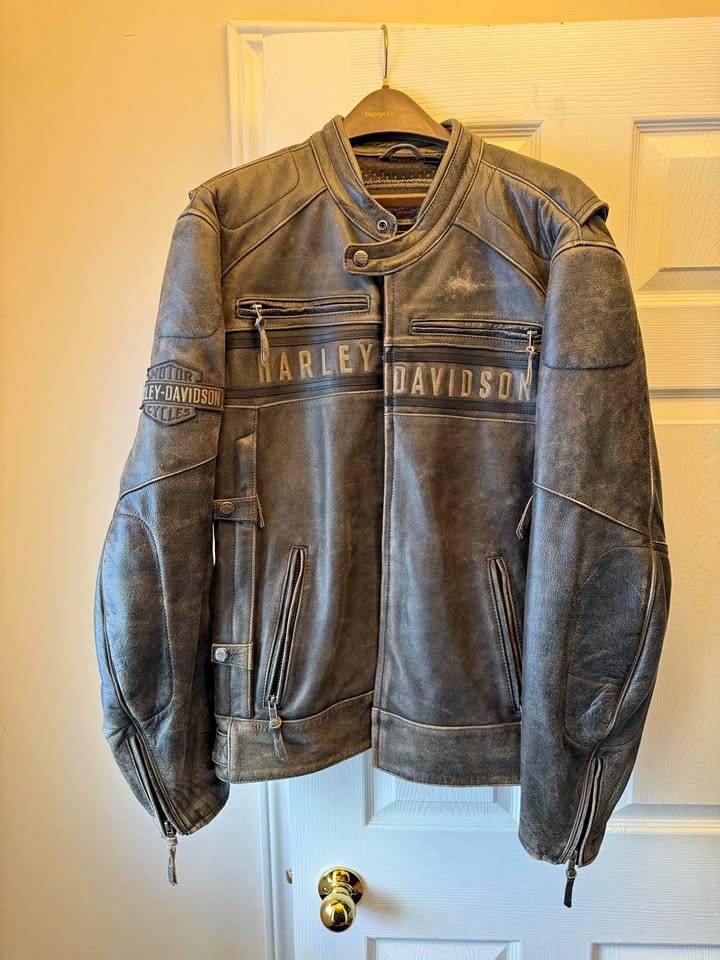 1 / 81 / 8Buy & SellHarley Davidson Leather Jacket (heavy - cold weather). 98074-14VHarley Davidson Leather Jacket (heavy - cold weather). 98074-14V$450Passing Link Triple Vent Harley jacket. Like new - no rips, tears, or scuffs. Heavy duty leather. Size XL. Distressed leather.WHERE TO MEETCheck LocationView MapSELLERverifiedJohnny FRichmond Hill E650 reviews0 chats·0 favorites·15 viewsSEND CHAT TO SELLERHi Johnny F! I’m interested in your listing.Hi Johnny F! I’m interested in your listing.Get the Karrot app to chatSign In to chat