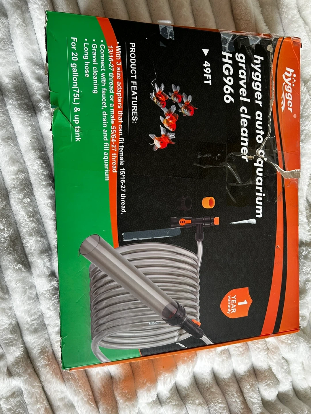 This is a Hygger auto aquarium gravel cleaner, 49FT long. It includes 3 size adapters. Connect with faucet, drain and fill aquarium.