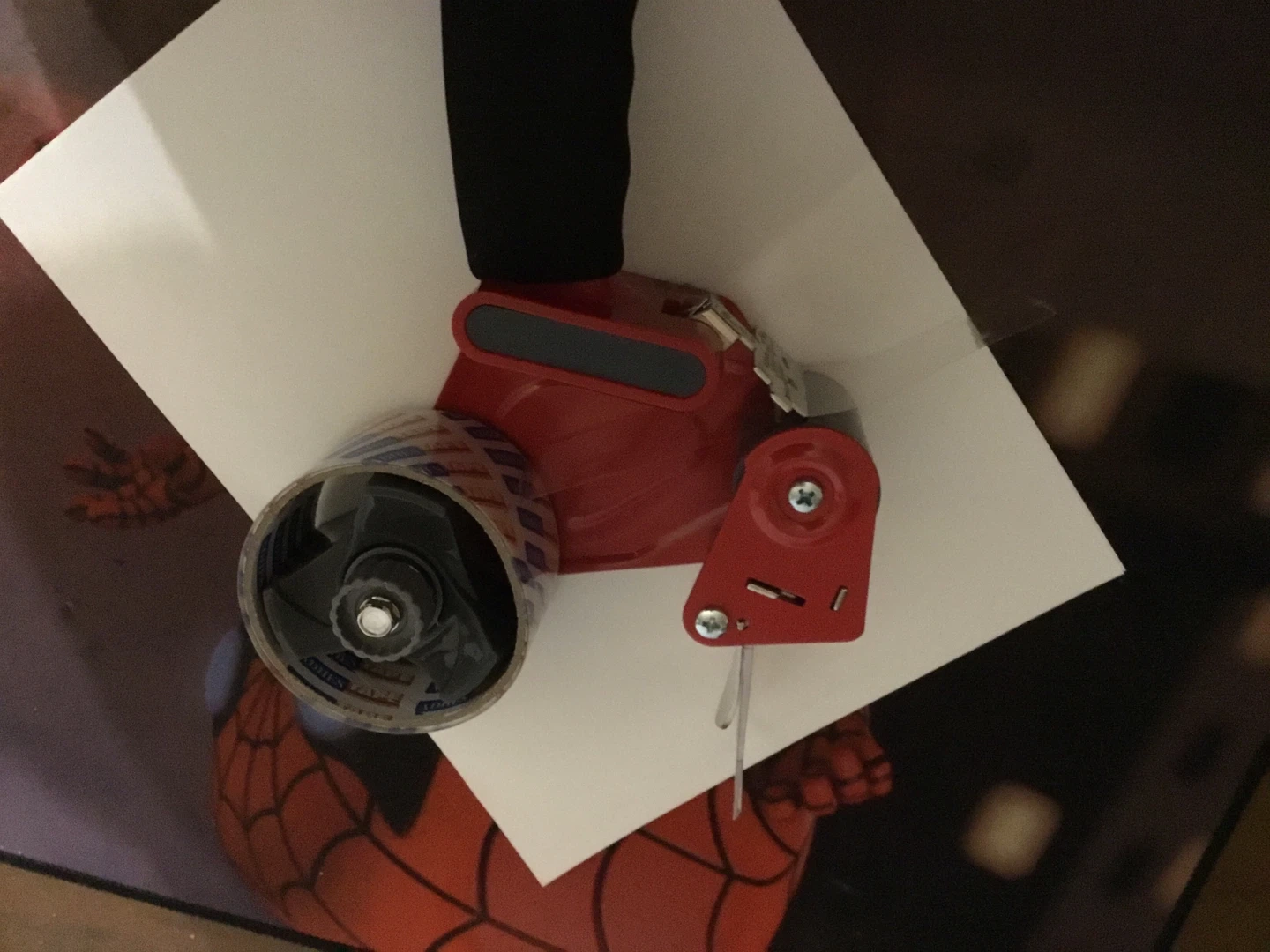 It's a handy red tape dispenser with a built-in cutter. This tool is great for quickly sealing boxes or packages. It's made of durable plastic.