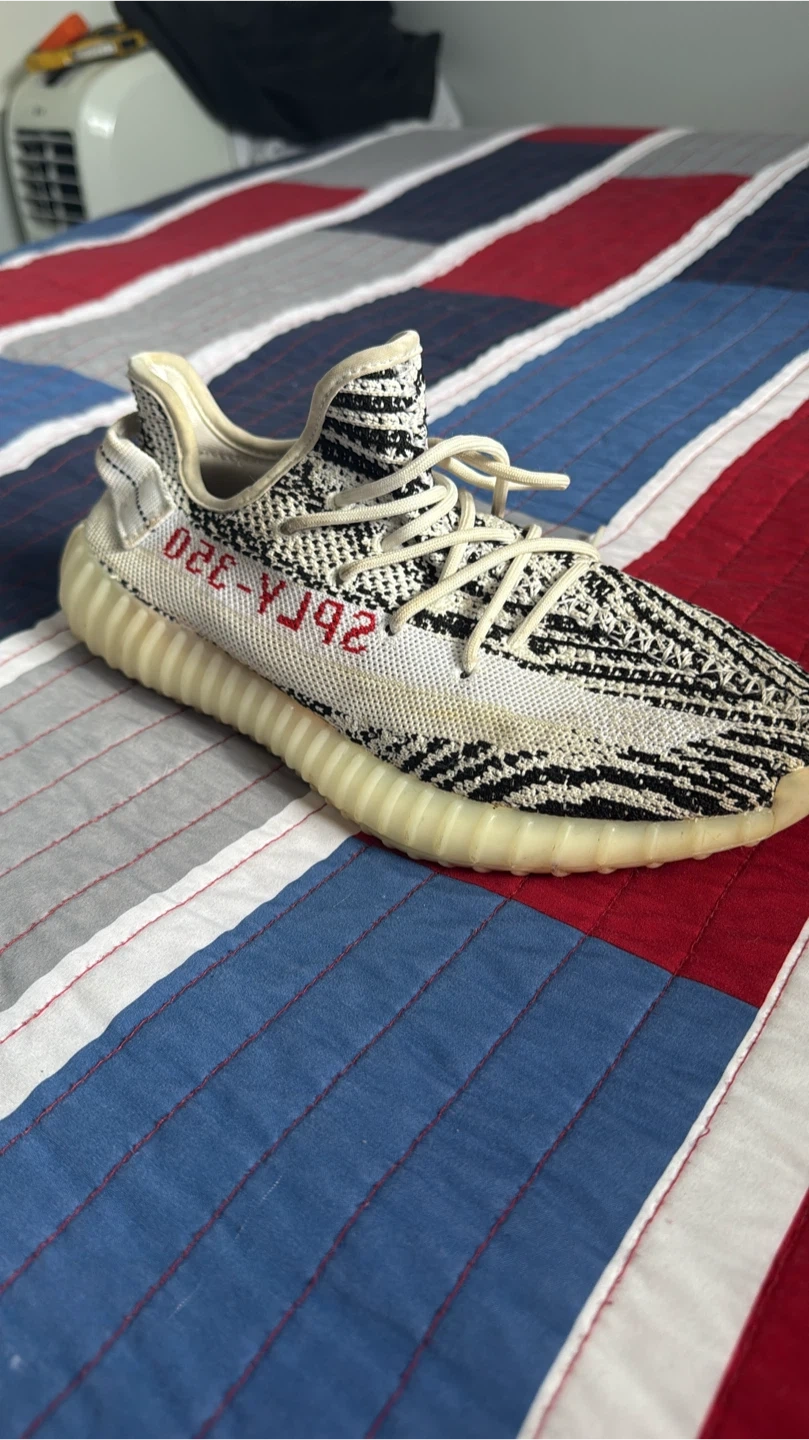 Selling a pair of Adidas Yeezy Boost 350 V2 in the Zebra colourway! These are a stylish and comfortable shoe that are sure to turn heads. They show some signs of wear, but still have plenty of life left in them! Size 8 men’s
