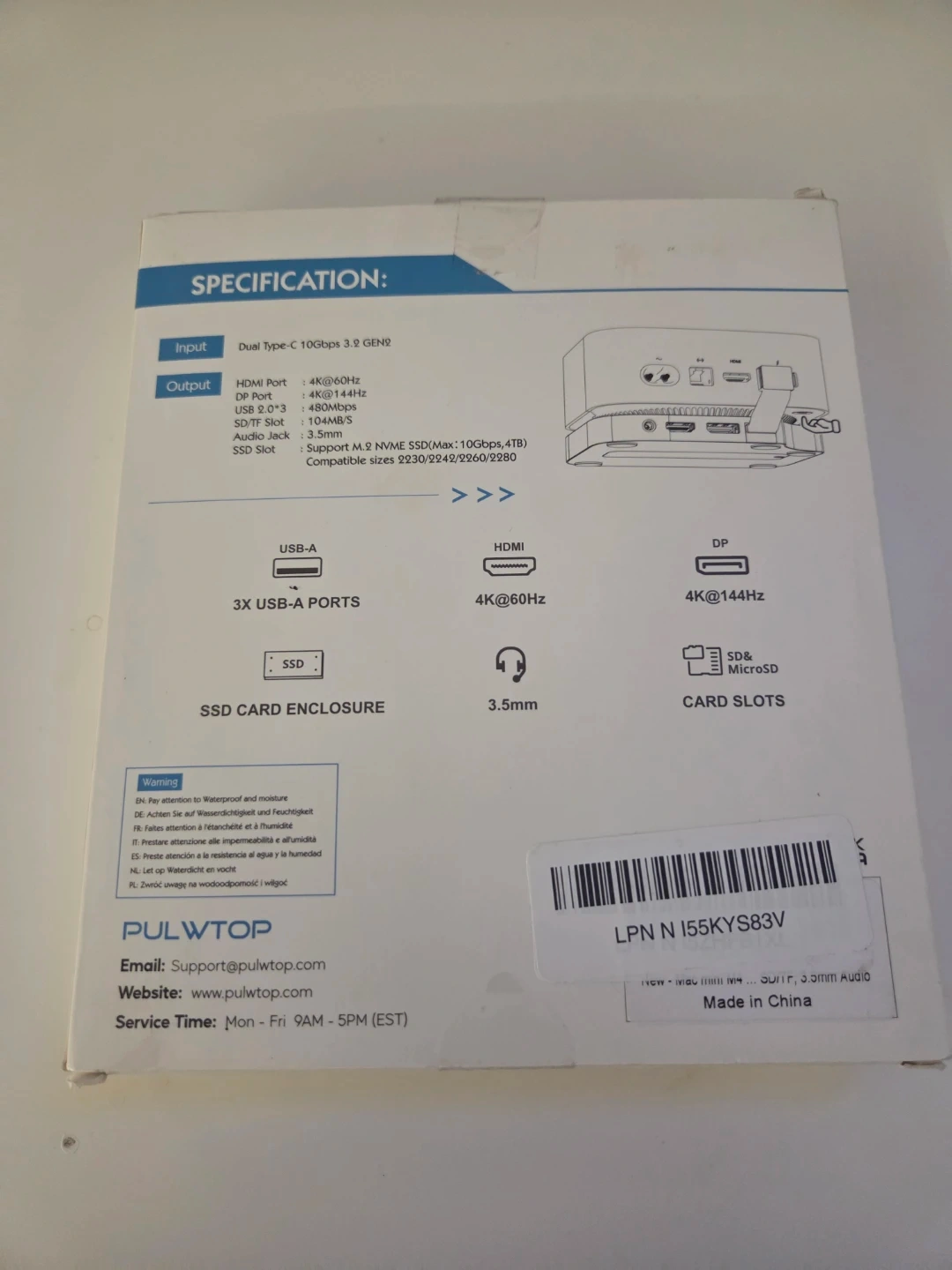 It supports M.2 NVME SSD enclosure in various sizes. The hub offers multiple ports, including HDMI and DisplayPort, for dual monitor support at up to 4K resolution.
