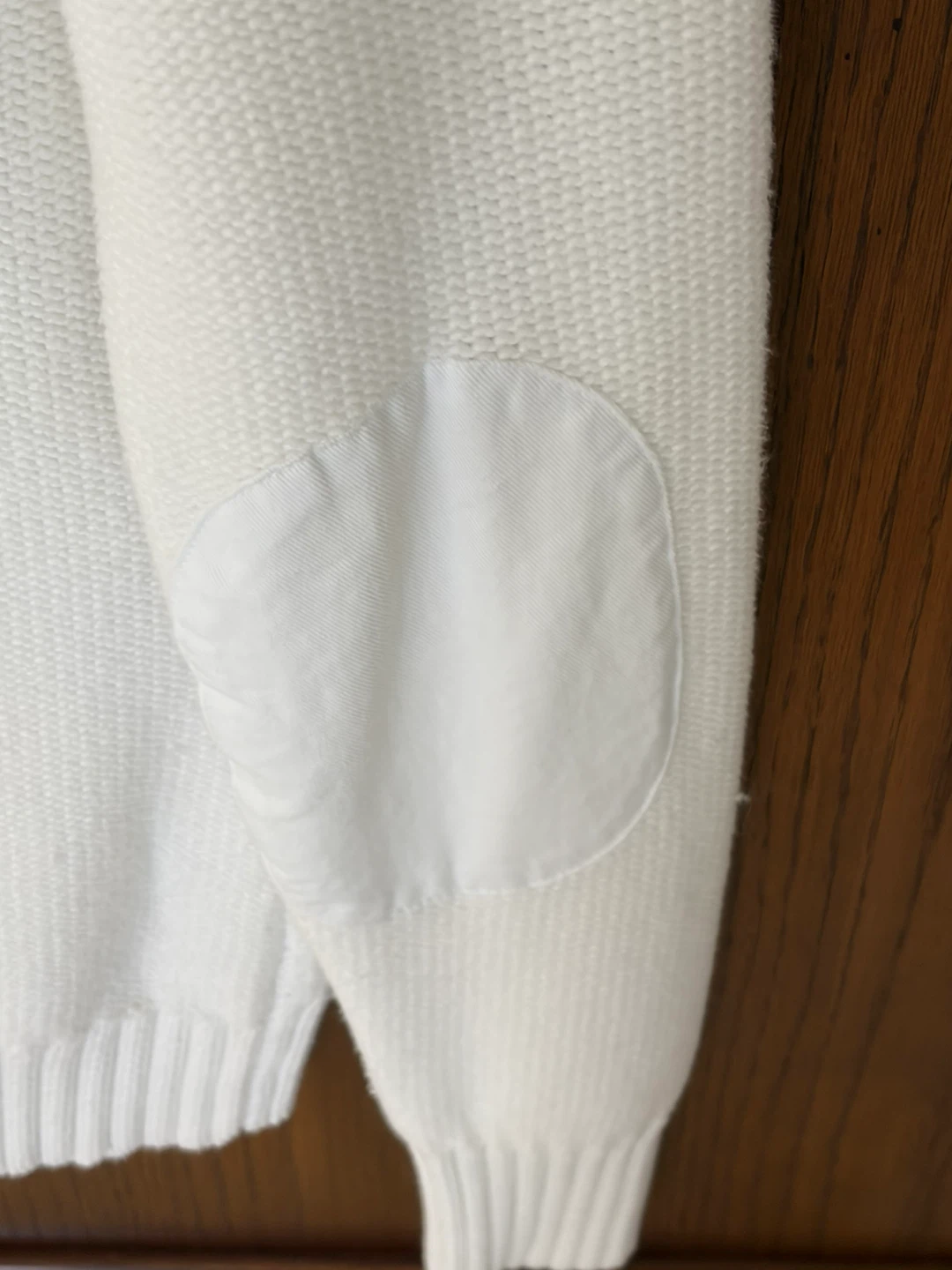 Ralph Lauren Jeans Company zip-up sweater. 2 side pockets with zippers. Made of 100% cotton. Features elbow patches and a shawl collar.