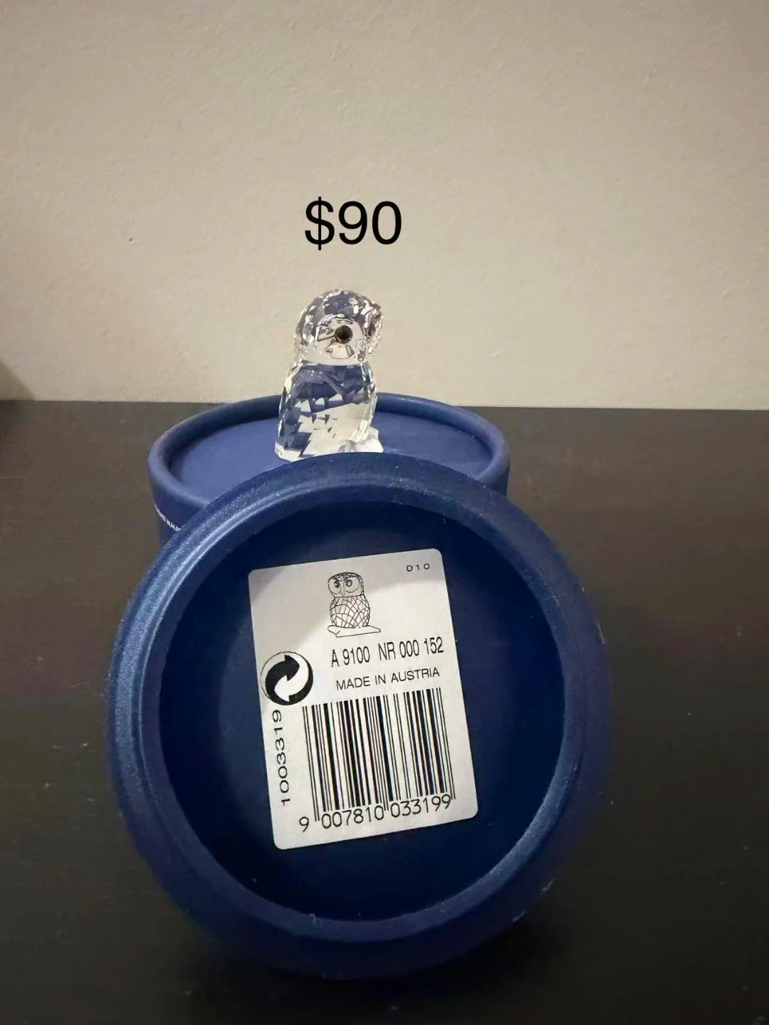 Beautiful Swarovski crystal figurines including a seahorse, a blue bird, and two owls. Made in Austria, these decorative pieces add sparkle to any space. Includes original boxes for some items.