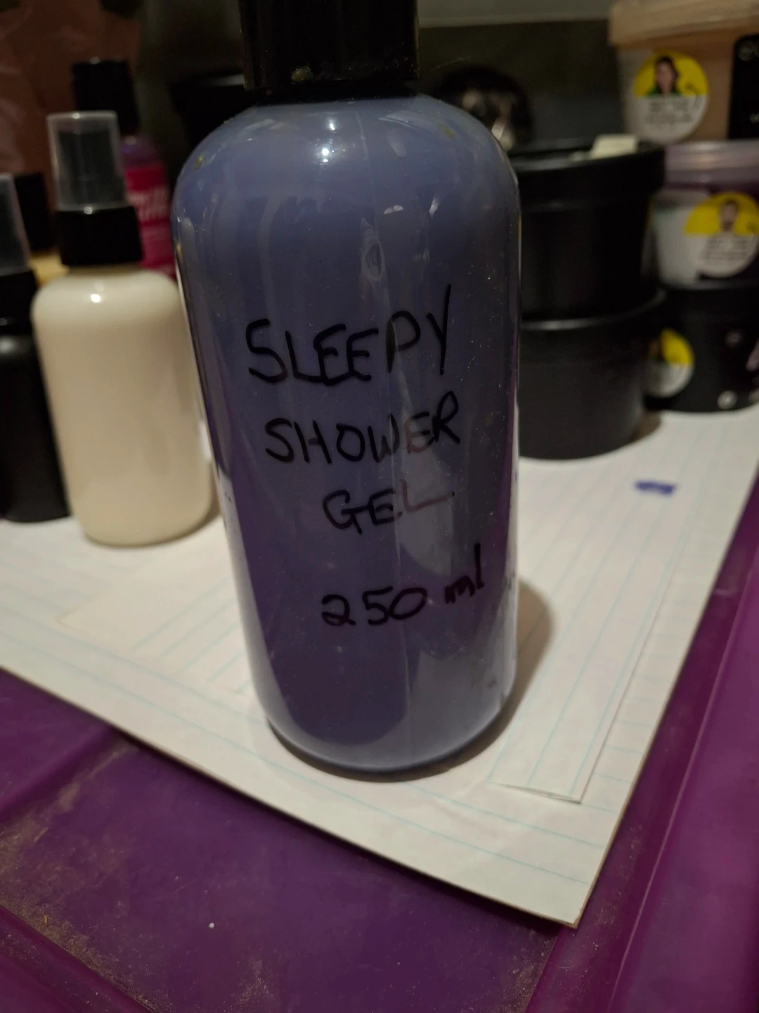 Lush Sleepy Shower Gel in a 250ml bottle. It's made with lavender oil, oat milk, and ylang ylang oil. This deeply relaxing shower gel is perfect for winding down before bed.