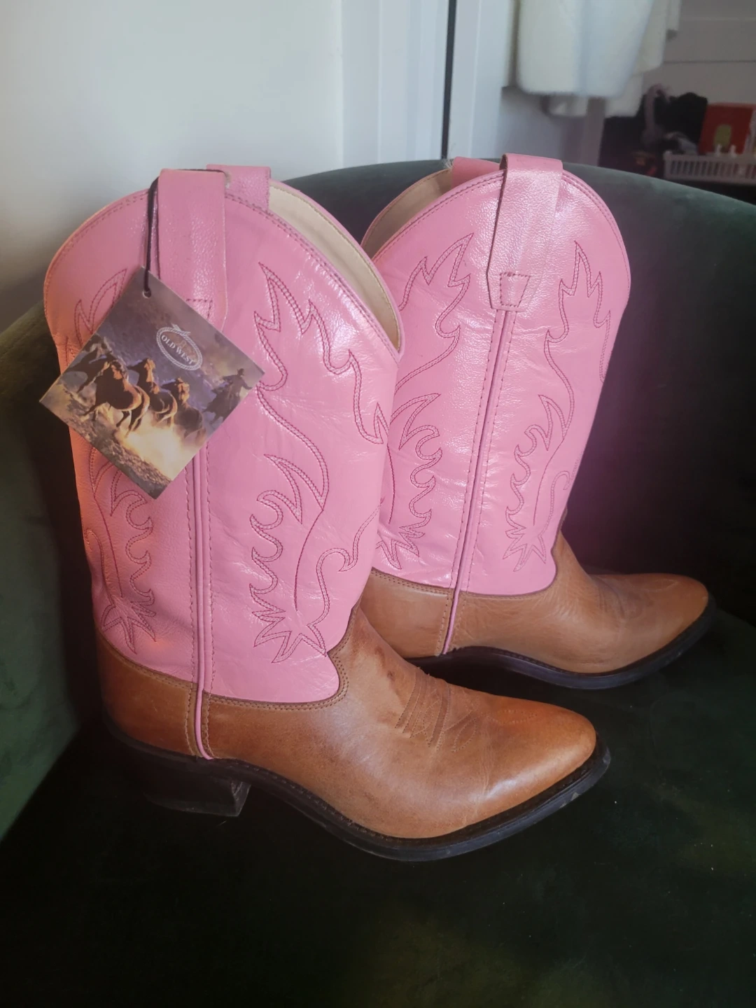 Buy & SellOld West Pink & Brown Leather Cowboy BootsOld West Pink & Brown Leather Cowboy Boots$40Cute pink and brown Old West cowboy boots. Brought home from Nashville. They're made with a leather upper. Size 7 worn once.ConditionNewWHERE TO MEETCheck LocationView MapSELLERverifiedCathyE End Danforth872 reviews0 chats·0 favorites·30 viewsSEND CHAT TO SELLERHi Cathy! I’m interested in your listing.Hi Cathy! I’m interested in your listing.Get the Karrot app to chatSign In to chat